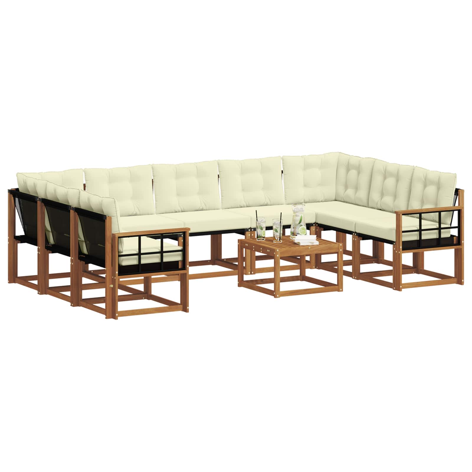 • Masivní akáciové dřevo: Tento sofa set, vyrobený z kvalitního masivního akáciového dřeva, přináší přírodní texturu a dlouhou životnost. Jeho bohatá barva zvýrazňuje vizuální přitažlivost a dodává mu moderní vzhled s vysokou odolností proti povětrnostním podmínkám.