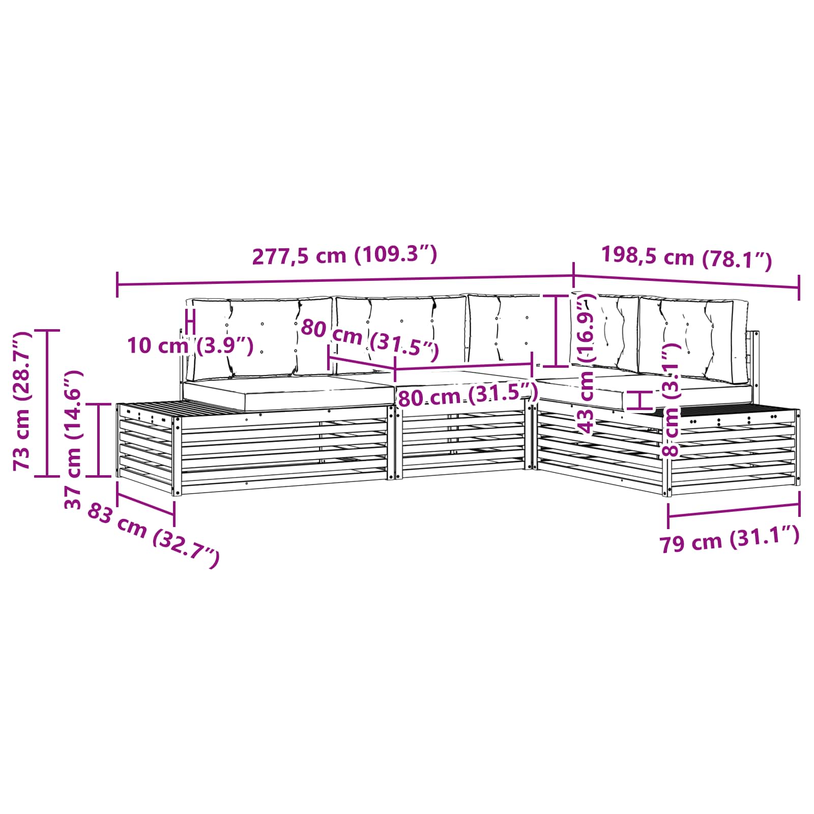 Sada venkovního nábytku je skvělým spojením stylu a funkčnosti, což ji činí skvělým centrálním prvkem pro každou zahradu nebo terasu. Moderní design se si čistými liniemi a minimálním dekorem dodává eleganci a podporuje relaxaci i společenské akce venku. Používá se pouze masivní akáciové dřevo, takže zaručuje trvanlivost a dlouhotrvající místo, ideální pro ty, kdo chtějí kombinovat praktičnost s elegantním designem v zahradním nábytku.