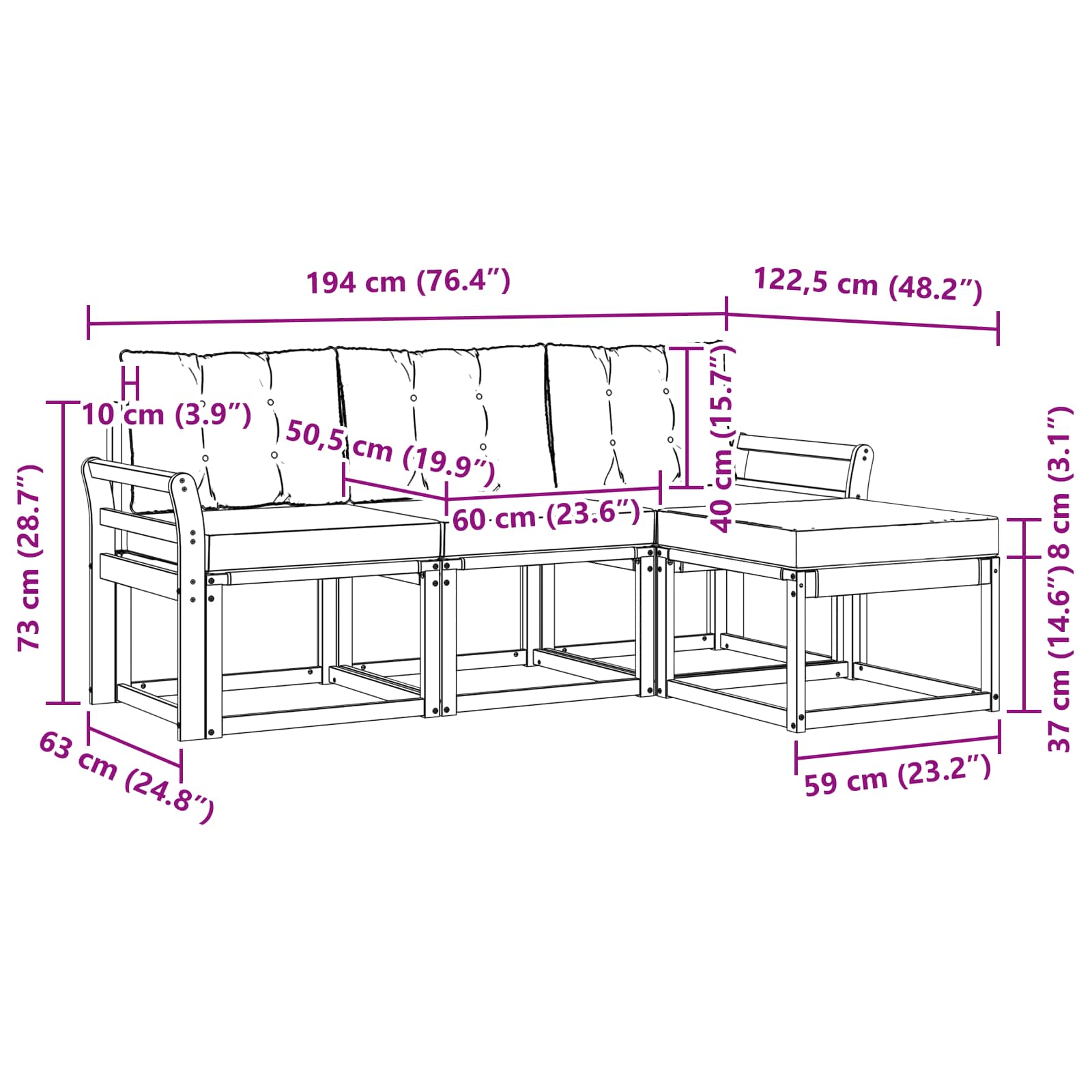 Tato venkovní pohovková souprava spojuje styl a funkčnost, čímž se stává skvělým středobodem pro vaši zahradu nebo terasu. Její moderní design s čistými liniemi a minimalismem dodává šmrnc a je ideální pro odpočinek a společenské akce. Vyrobená z masivního akáciového dřeva, což jí zajišťuje dlouhou životnost a vizuální přitažlivost, je perfektní volbou pro ty, co hledají kombinaci praktičnosti a elegance.