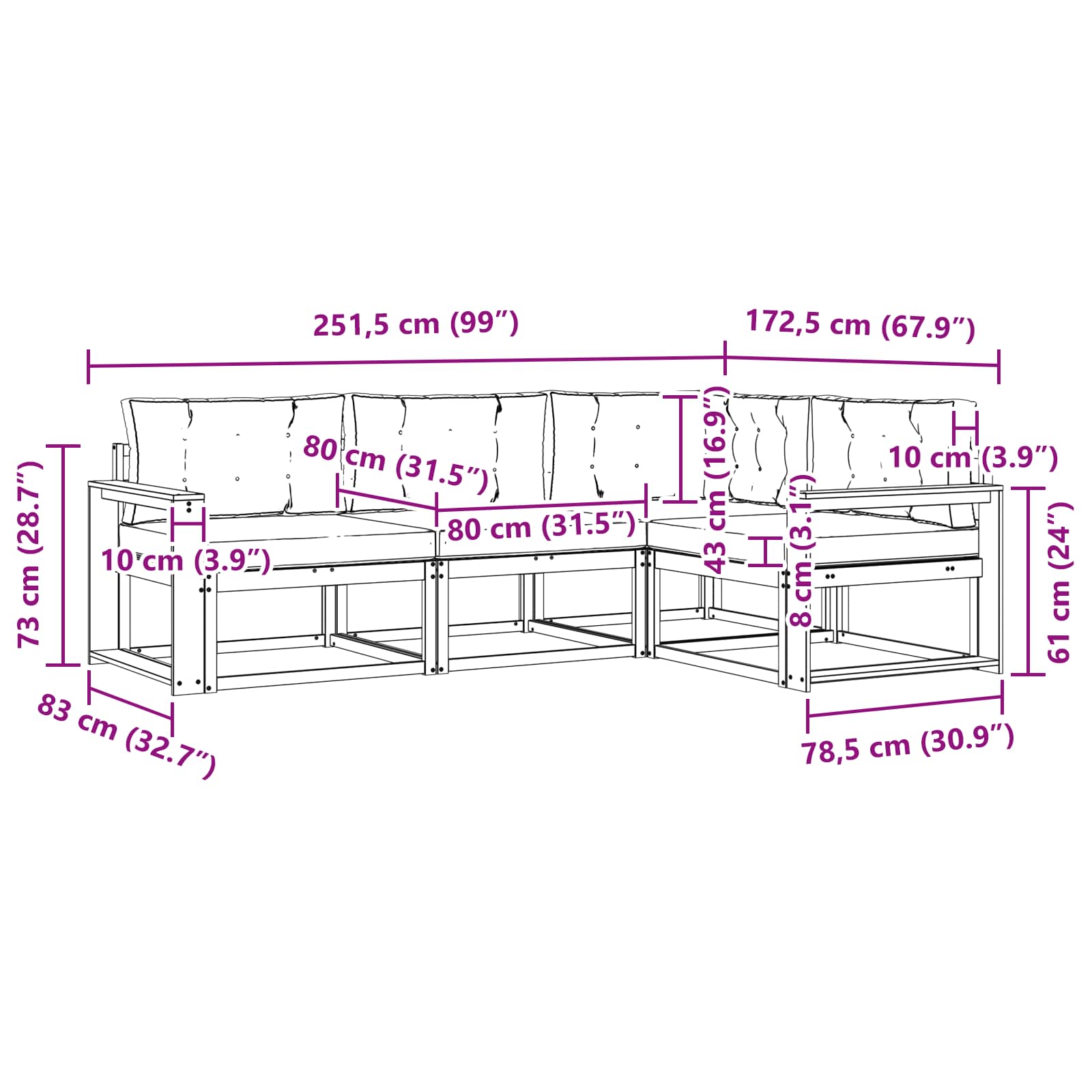 • 4 x Sedací polštář: 80 x 80 x 8 cm (D x Š x V)