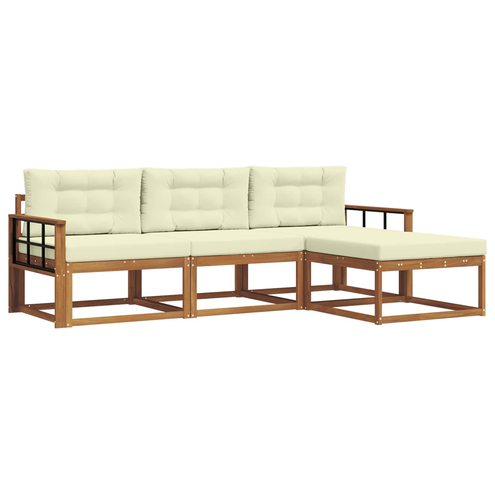 Tato venkovní sedací souprava spojuje moderní eleganci s praktickým designem, perfektně přetváří každou zahradu, patio nebo prostor u bazénu na skvělé místo k odpočinku a setkávání s přáteli. Masivní akáciové dřevo s bohatou barvou nejen že vypadá skvěle, ale zajišťuje i pevnost a odolnost vůči počasí. Její modulární konstrukce nabízí možnost přizpůsobit se velikosti vašeho prostoru, což dává volnost a kreativitu při uspořádání.