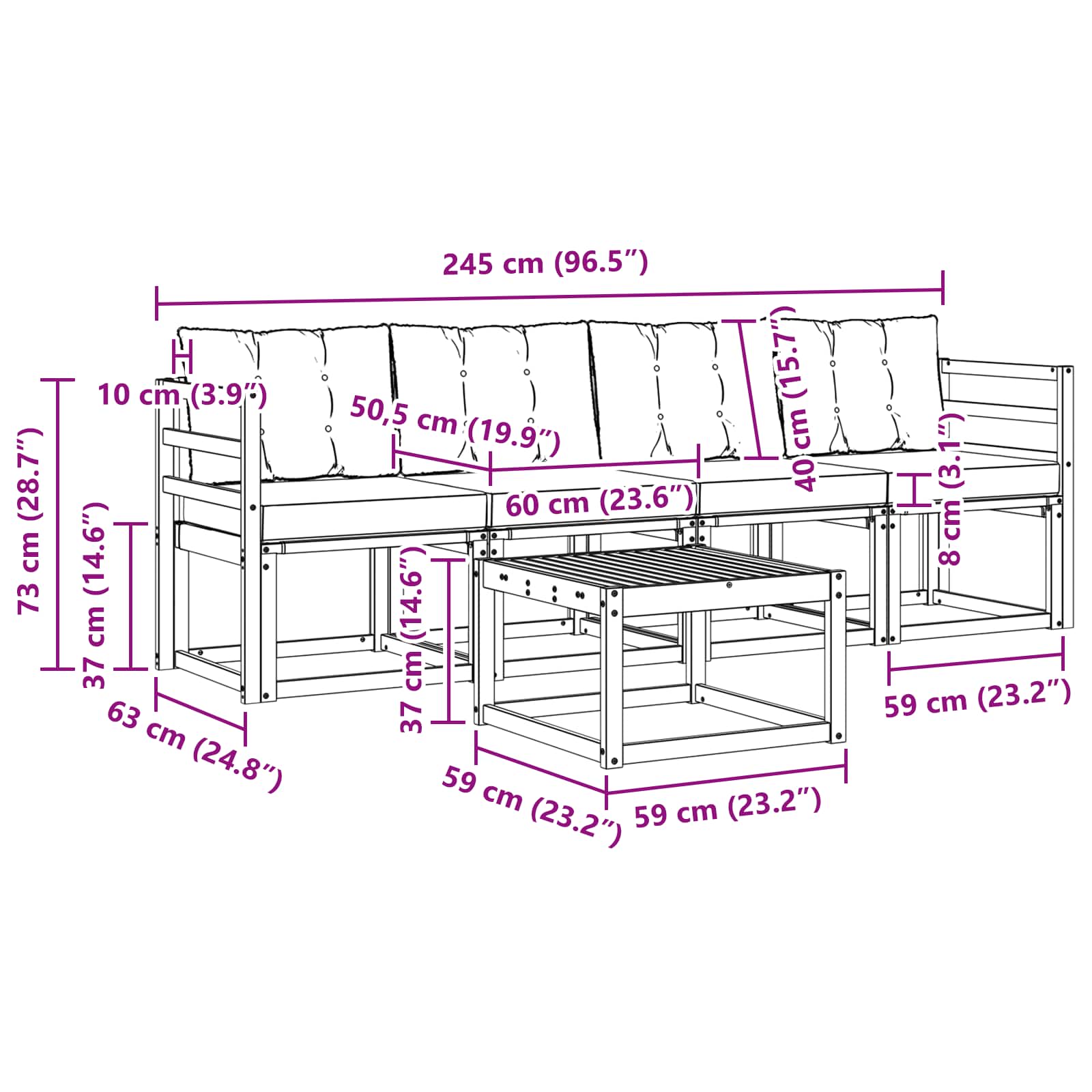 • 4 x Střední pohovka: 59 x 63 x 73 cm (DxŠxV)