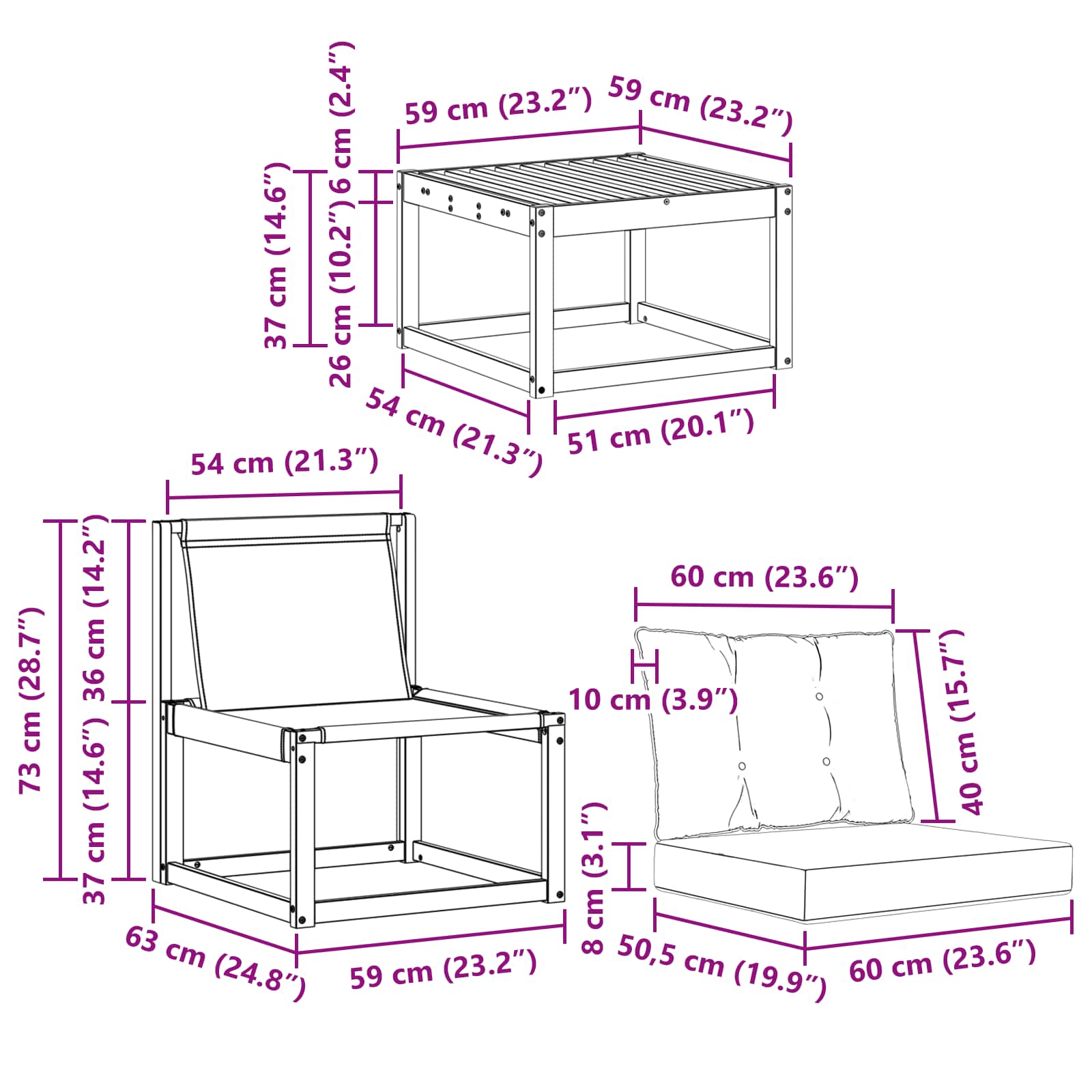 Tahle zahradní sada nábytku spojuje styl s funkčností, a stává se tak hlavním lákadlem pro každou zahradu nebo terasu. Moderní design s čistými liniemi dodává eleganci a podporuje relaxaci a setkávání venku. Celá je vyrobená z masivního akáciového dřeva, což zajišťuje její odolnost a dlouhou životnost, ideální volba pro ty, kdo chtějí spojit praktičnost s vylepšeným designem venkovního nábytku.