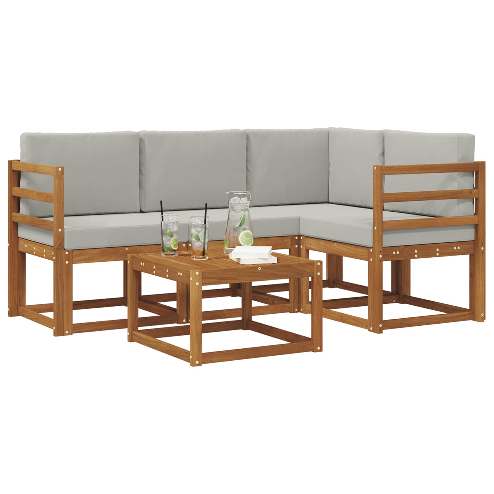 • Odolné masivní akáciové dřevo: Tato sada venkovního nábytku z akáciového dřeva je extrémně odolná vůči venkovním podmínkám. Pevná konstrukce zabezpečuje stabilitu a dlouhou životnost, zatímco teplé přírodní tóny vylepšují každý kout vaší zahrady nebo terasy.