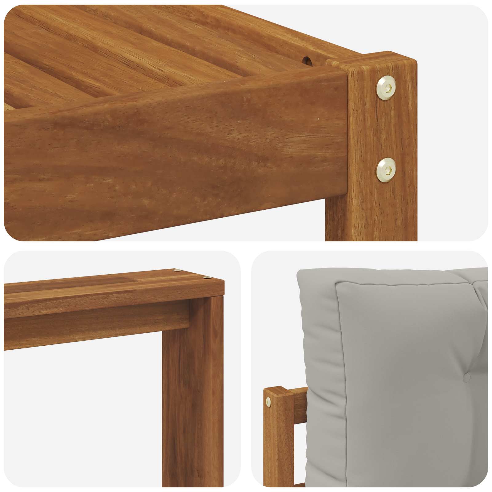 • Kvalitní materiál: Vyrobená z masivního akáciového dřeva, pohovka nabízí stabilitu a eleganci, skvěle se hodí do přírodního prostředí. Akácie je vysoce odolná, čímž zaručuje dlouhou životnost.