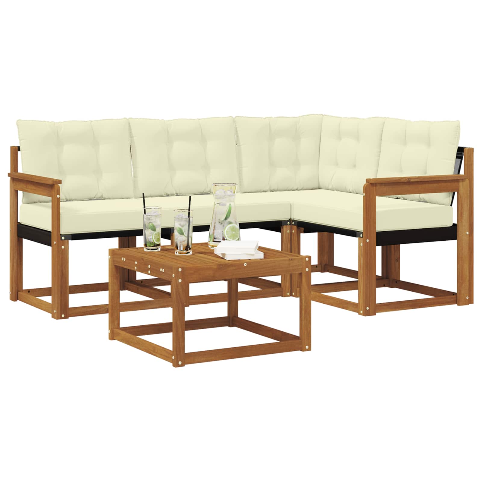 Venkovní pohovková souprava 5 pcs Přirozená a Krémová