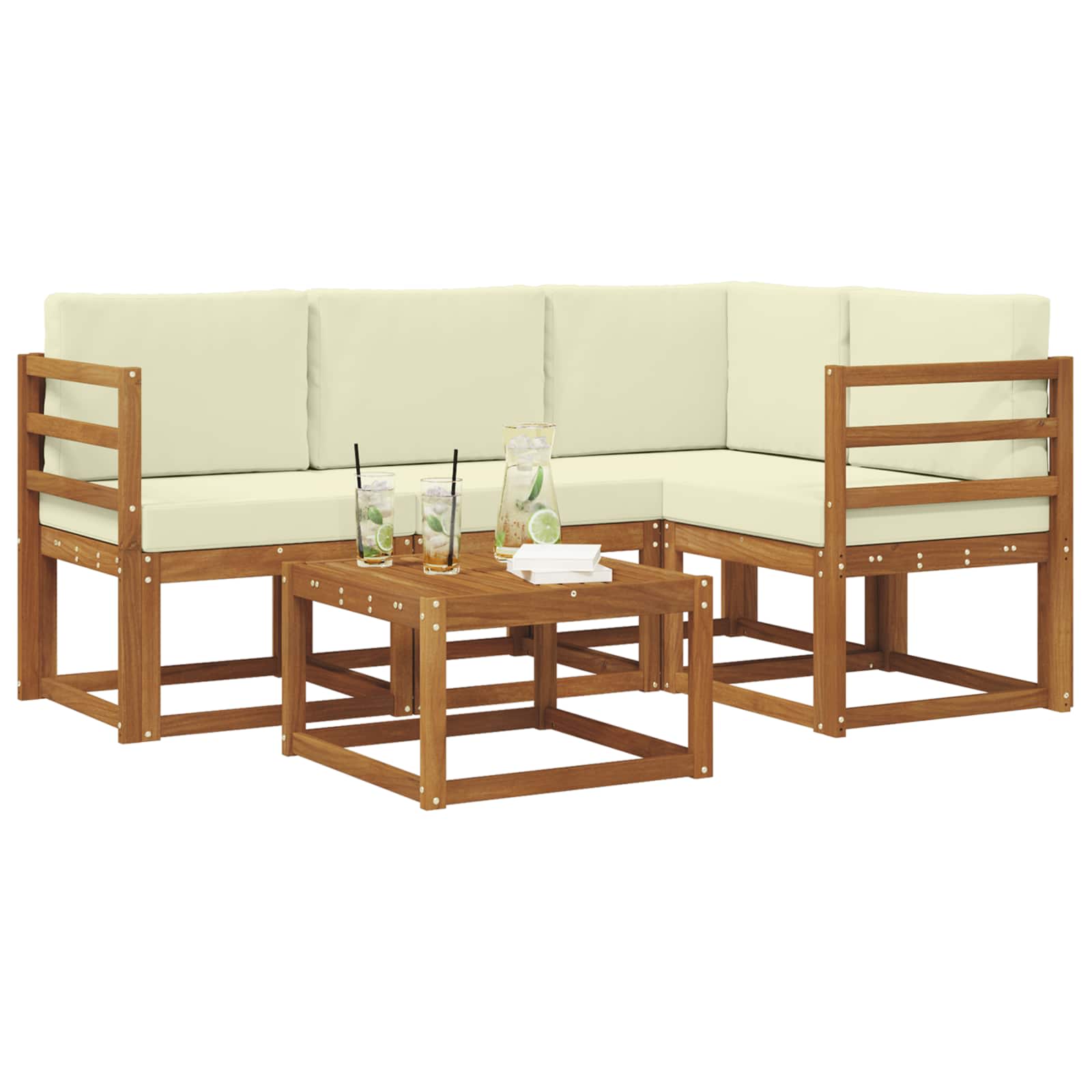 • Odolné masivní akáciové dřevo: Tato sada venkovního nábytku z akáciového dřeva je extrémně odolná vůči venkovním podmínkám. Pevná konstrukce zabezpečuje stabilitu a dlouhou životnost, zatímco teplé přírodní tóny vylepšují každý kout vaší zahrady nebo terasy.