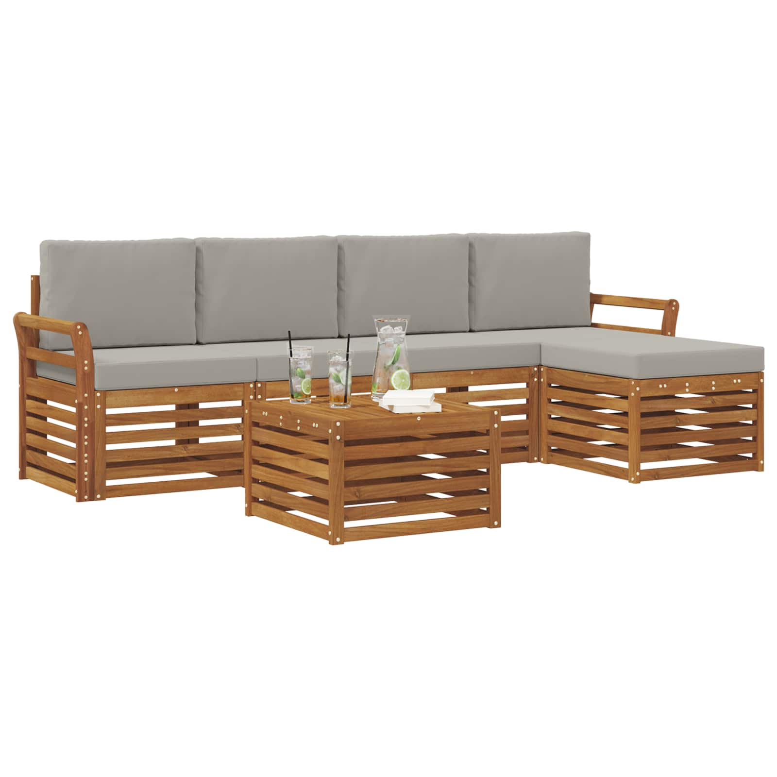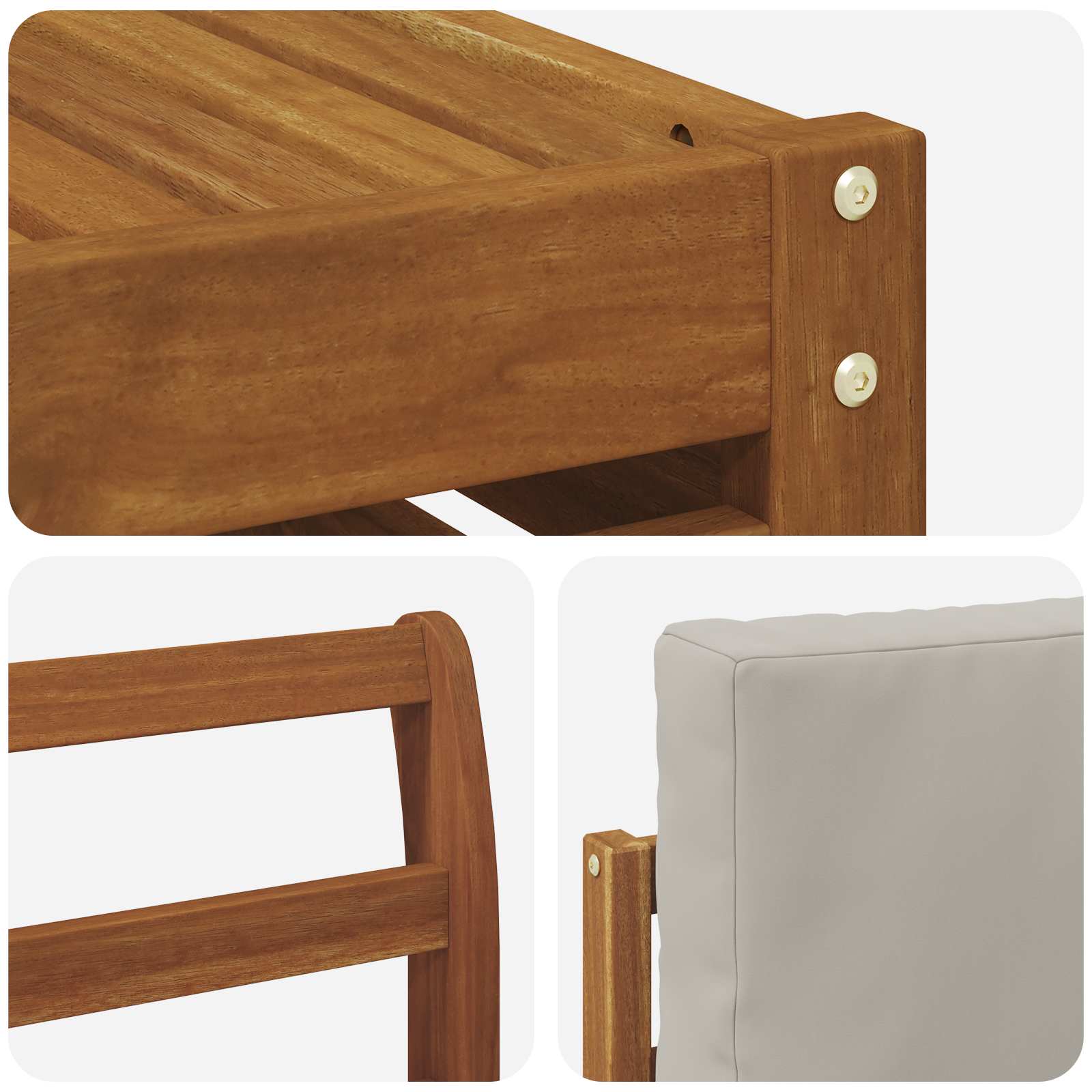 • Odolné masivní akáciové dřevo: Tato venkovní souprava nábytku je z akáciového dřeva, které je známé pro svou odolnost. Pevná konstrukce zaručuje spolehlivost a stabilitu, zatímco teplý přírodní tón skvěle doplní jakoukoli zahradu nebo terasu.