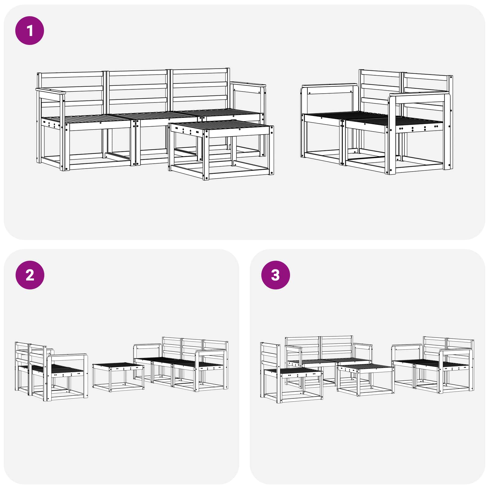 • Pohodlí a flexibilita: Modulární design umožňuje flexibilní uspořádání vhodné pro různé prostory a potřeby. Ať už chcete relaxovat, bavit se s přáteli nebo si jen tak číst, tahle souprava se skvěle přizpůsobí jakémukoliv venkovnímu prostředí a poskytne maximální pohodlí.