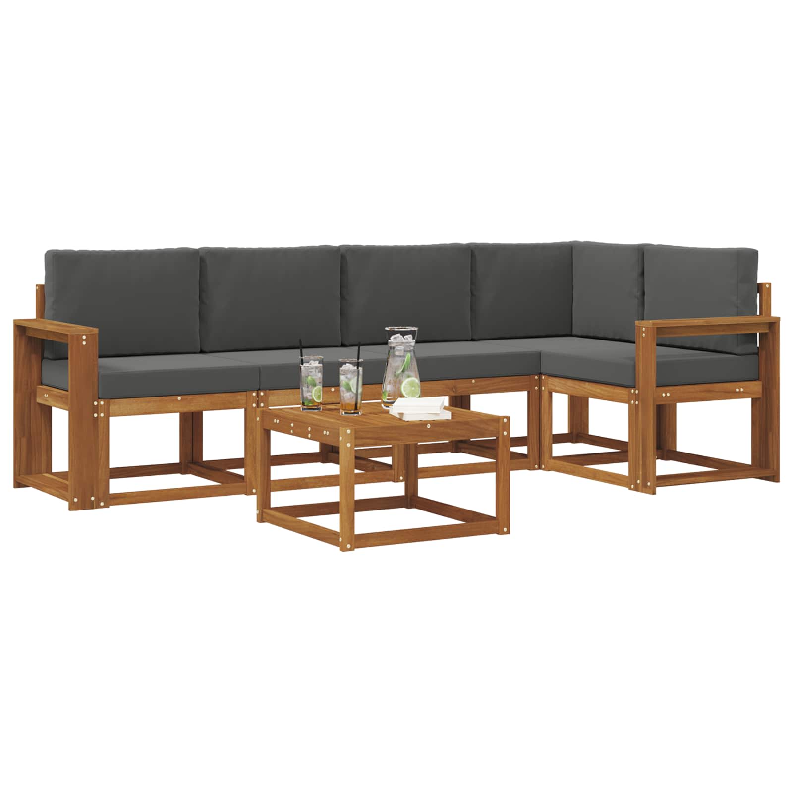 Souprava venkovního nábytku spojuje styl a funkčnost a stává se tak skvělým centrem pozornosti v každé zahradě nebo na terase. Její moderní design s čistými liniemi a minimálními detaily přináší eleganci a podporuje venkovní relaxaci a společenské akce. Vyrobená z masivního akáciového dřeva, je odolná a dlouhodobě atraktivní, ideální pro ty, kteří hledají kombinaci praktičnosti a sofistikovaného venkovního nábytku.