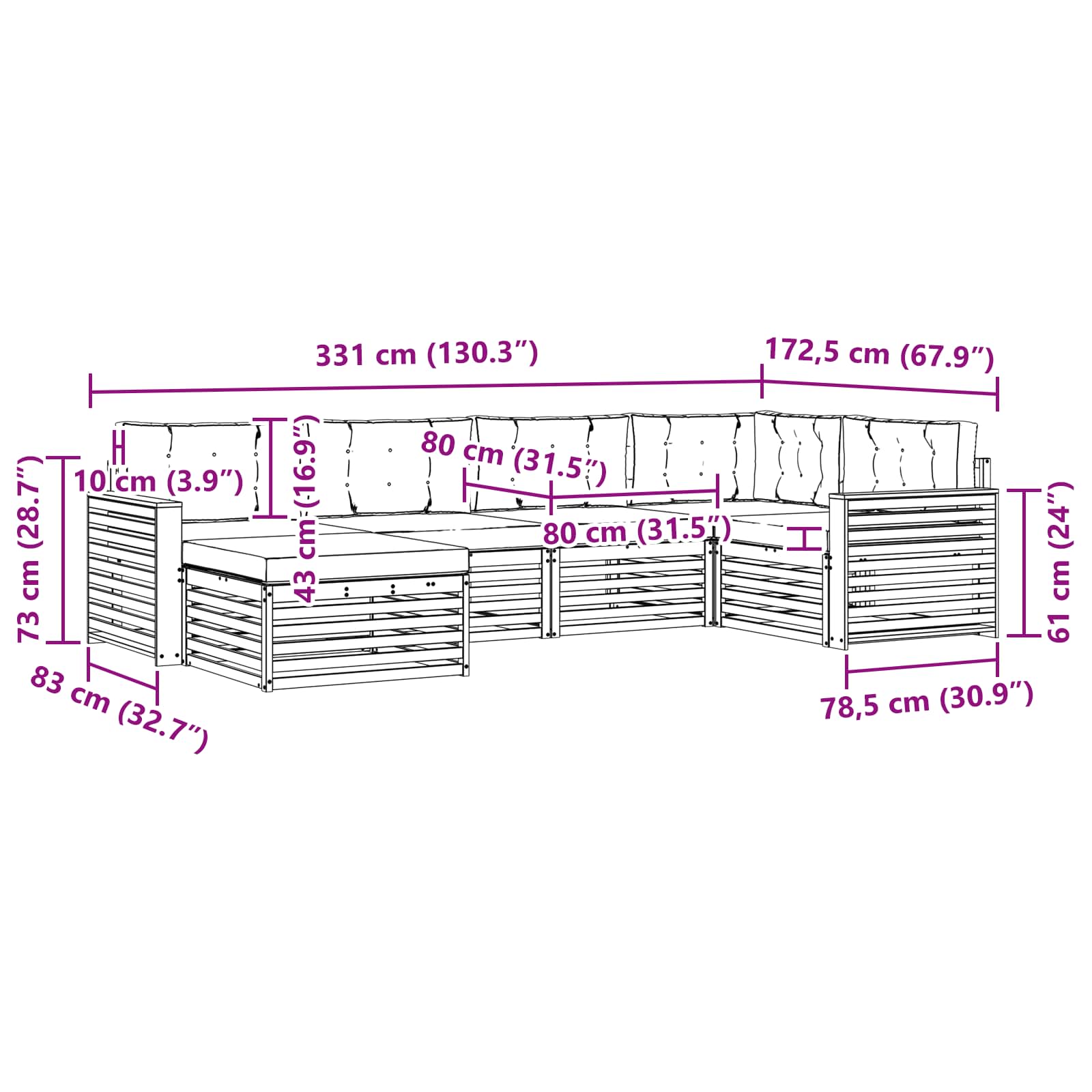 • 6 x Zádový polštář: 80 x 43 x 10 cm (D x Š x V)