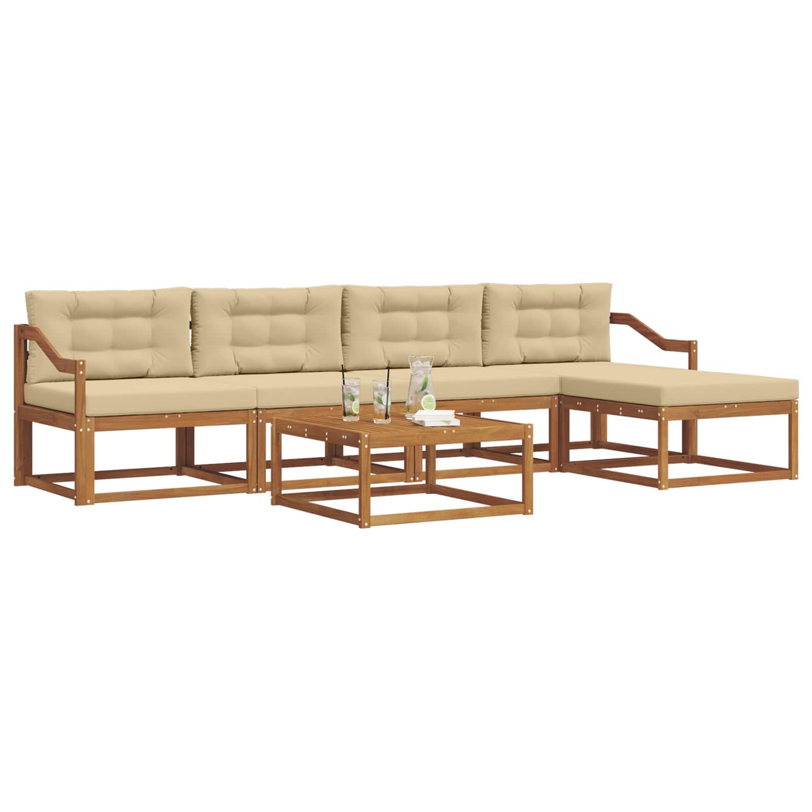 Tento venkovní rohový pohovkový set je stylovým a moderním kouskem pro terasu nebo zahradu. S čistými liniemi a moderním designem je vyroben z kvalitního masivního akáciového dřeva, které je silné a krásně vzorované. Hnědá barva přidává teplo a eleganci, což ho činí skvělým středobodem venkovního prostoru. Hodí se na večerní posezení či hosty a zapadne do různých stylů zahrad.