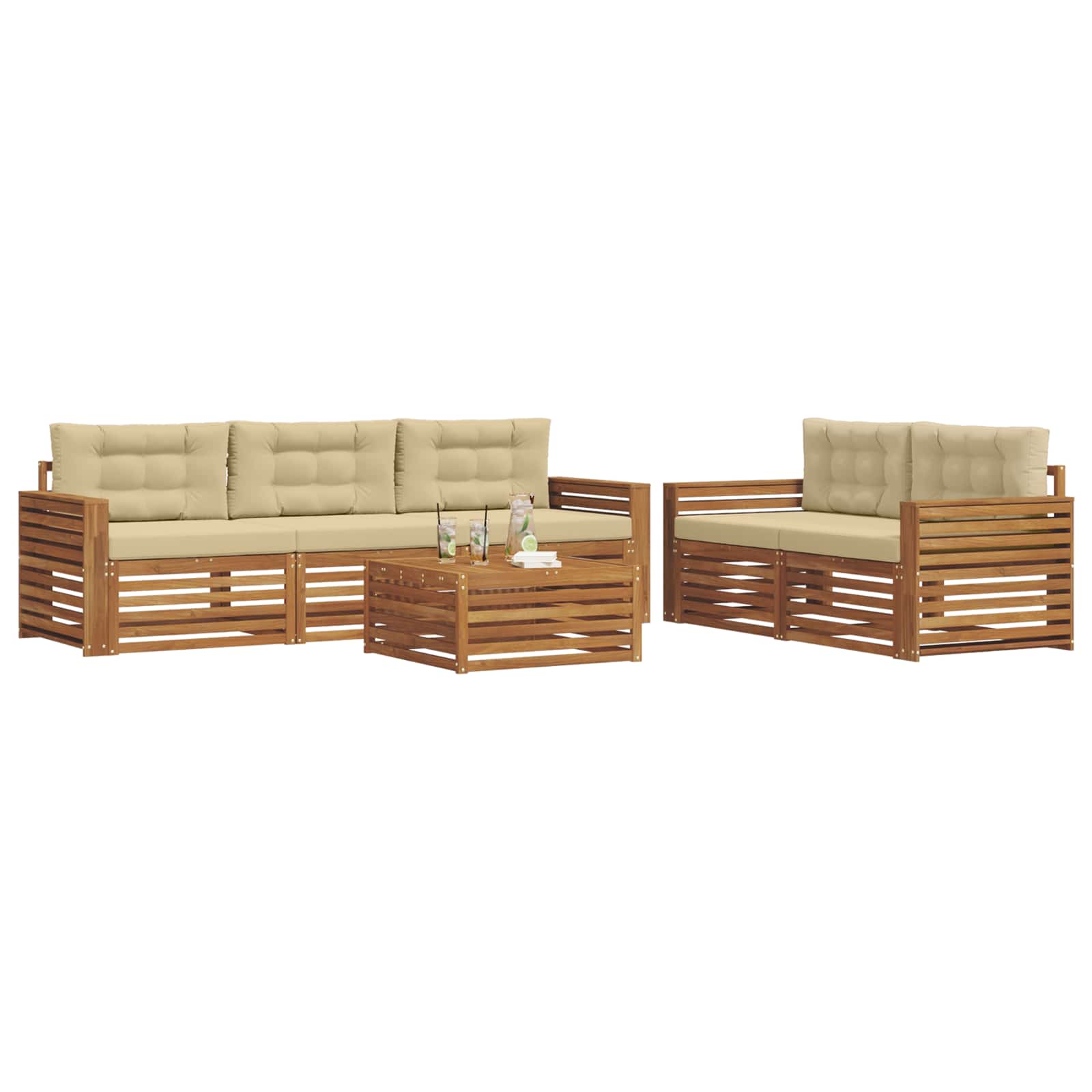Tento venkovní nábytek spojuje styl a funkčnost a stane se skvělým středobodem vaší zahrady nebo terasy. Moderní design s čistými liniemi a minimem detailů dodává eleganci a zároveň podporuje pohodové chvíle venku. Vyrobený z masivního akáciového dřeva, set je jak odolný, tak stylový – ideální volba pro ty, co chtějí praktičnost bez kompromisů na vzhledu.