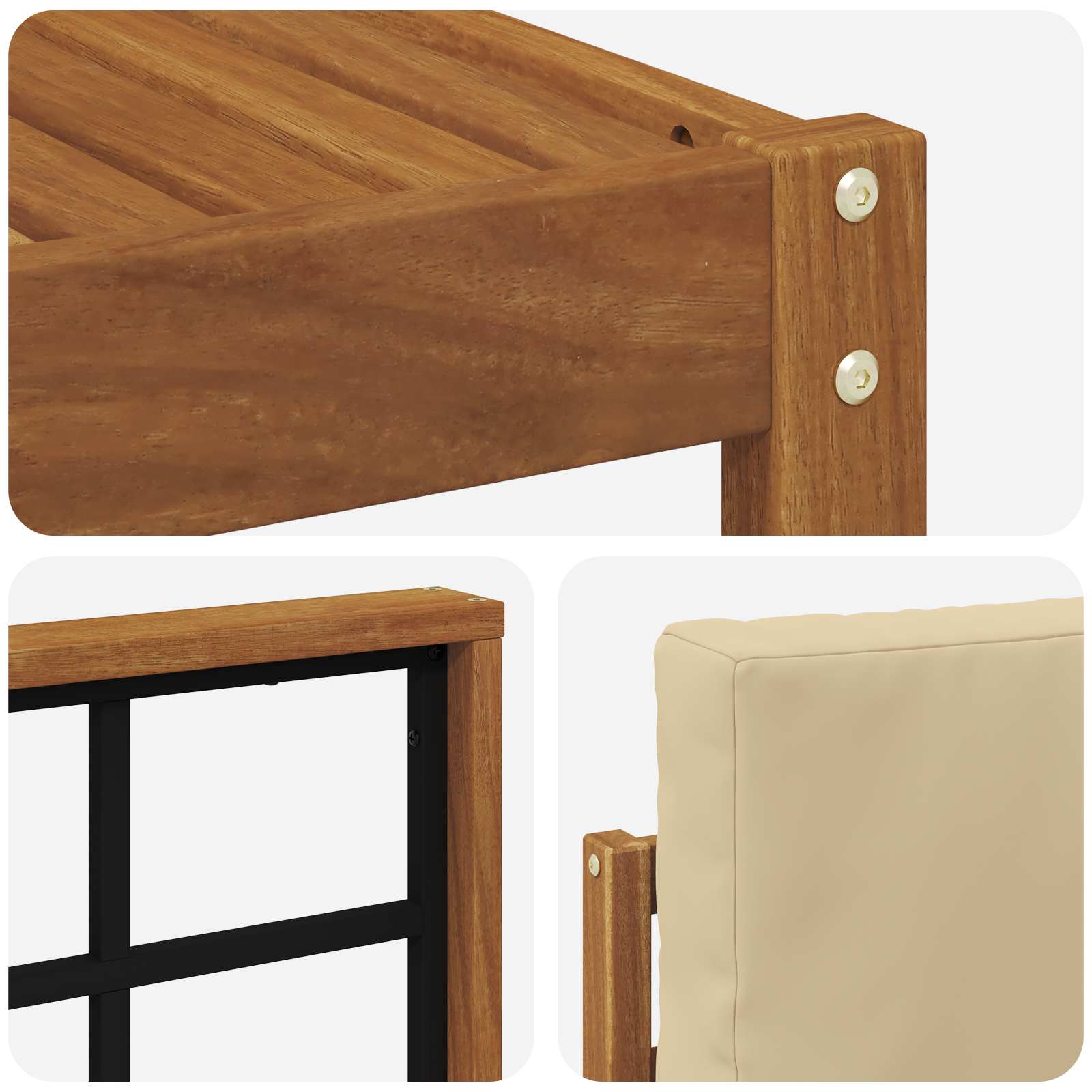 • Odolné akáciové dřevo: Tento set vyrobený z masivního akáciového dřeva je stabilní a dlouhotrvající. Odolává různým podmínkám venku, takže si můžete užívat čas venku bez starostí.