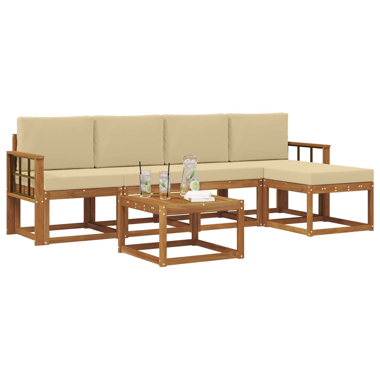 Tento venkovní nábytek přináší perfektní mix moderního stylu a praktického designu. Vytvořený pro venkovní prostory, jeho vzhled je jednoduchý a elegantní, doplněný teplou barvou masivního akáciového dřeva. Ať už máte terasu nebo dvorek, tento set přetvoří vaši zahradu na pohodové místo k odpočinku se svým lákavým designem a funkčním uspořádáním. Ideální pro rodiny a hostitele, jeho smart design spojuje pohodlí a hezký vzhled, láká hosty, aby si pobyt užili co nejdéle.