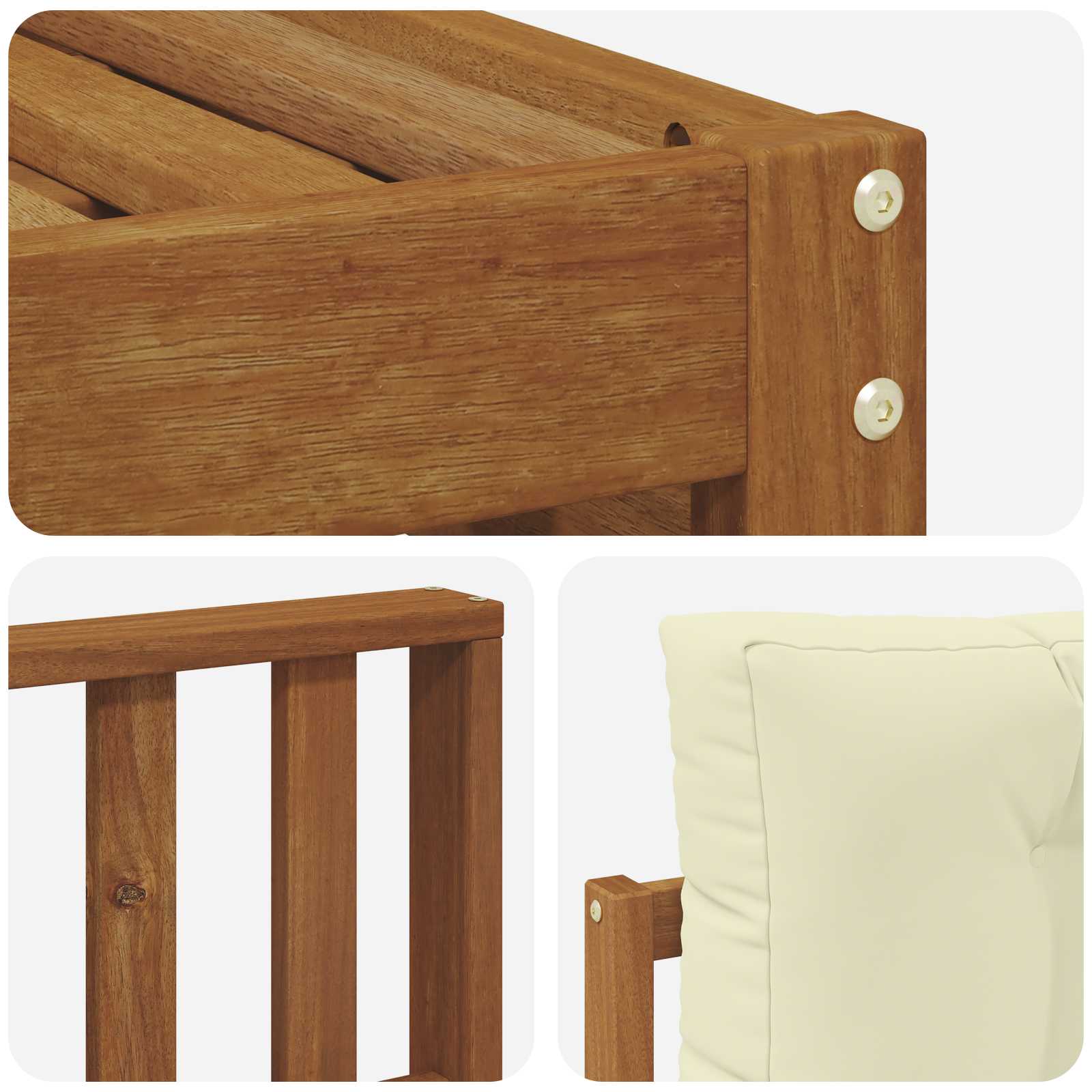 • Odolné masivní akáciové dřevo: Tento nábytek z akáciového dřeva je pevný a odolný vůči venkovním podmínkám. Konstrukce poskytuje skvělou podporu a stabilitu, zatímco teplé přírodní odstíny skvěle ladí s každou zahradou nebo terasou.