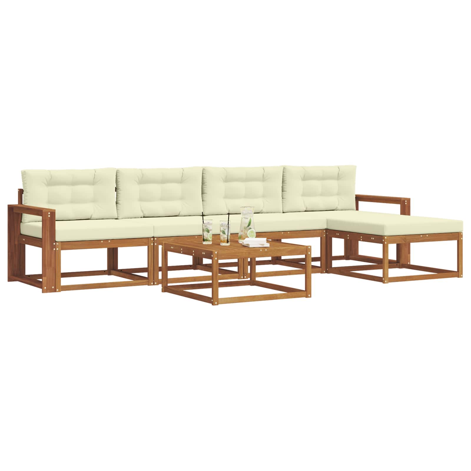 Tento venkovní rohový pohovkový set je stylovým a moderním kouskem pro terasu nebo zahradu. S čistými liniemi a moderním designem je vyroben z kvalitního masivního akáciového dřeva, které je silné a krásně vzorované. Hnědá barva přidává teplo a eleganci, což ho činí skvělým středobodem venkovního prostoru. Hodí se na večerní posezení či hosty a zapadne do různých stylů zahrad.