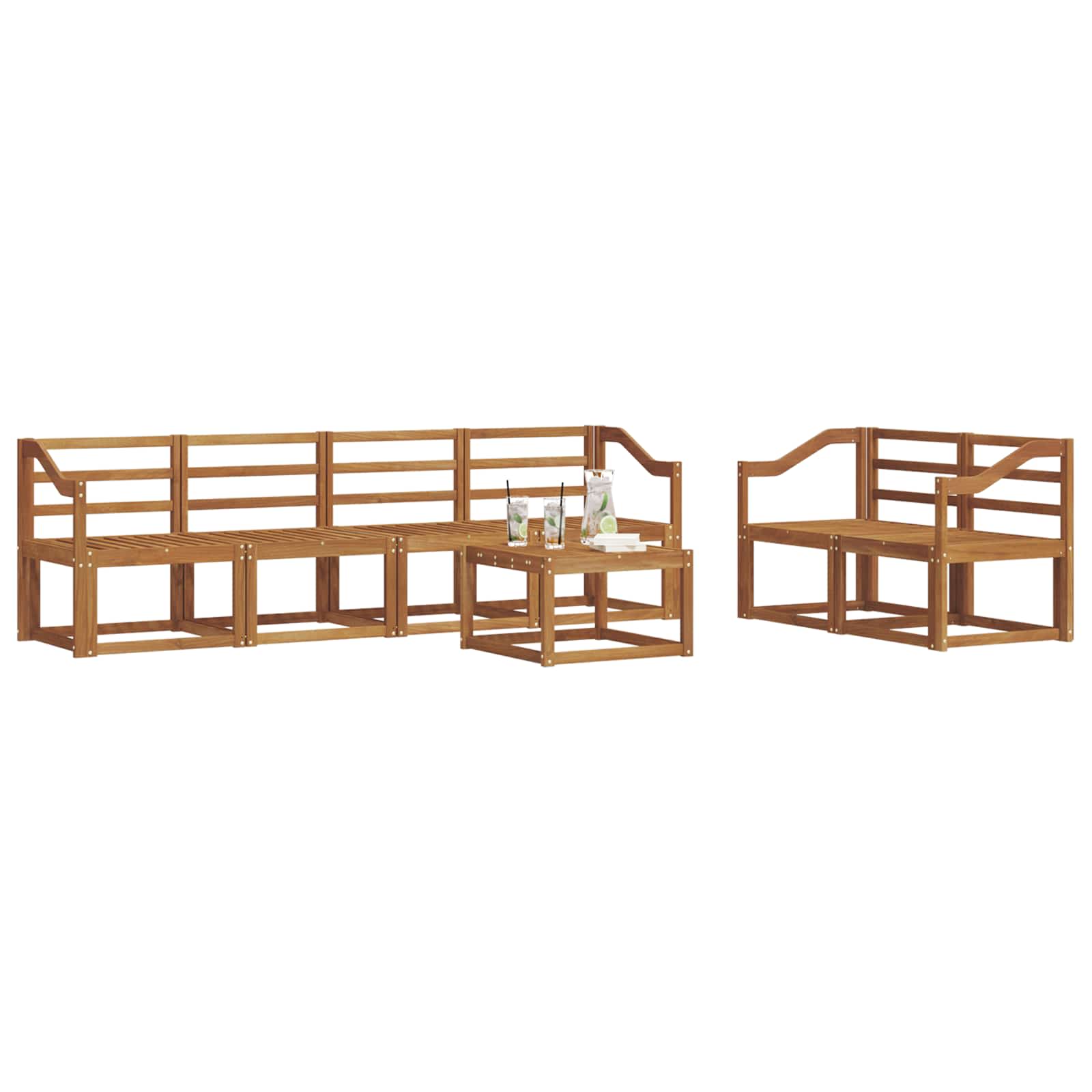 • Zahrnuté komponenty: Design zahrnuje ergonomické opěrky a opěradla pro větší pohodlí. Masivní akácie zaručuje skvělou konstrukci pro příjemné sezení, a efektivní design zajistí, že se snadno usadíte nebo uložíte.