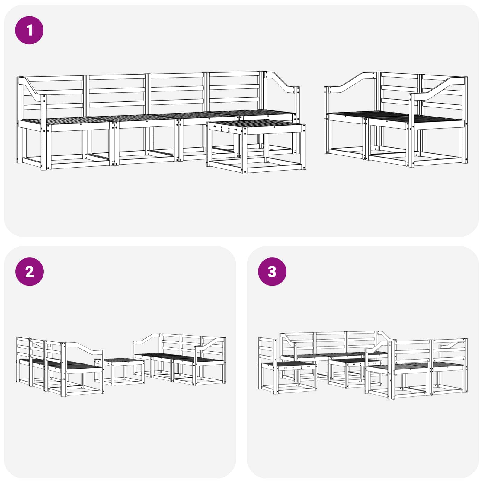 • Elegantní lamelový design: Tenhle set s moderními lamelami vypadá skvěle a zajistí dostatečnou ventilaci. Lamelový vzor se hodí k čistým liniím venkovní architektury a udržuje místo příjemně chladné během horkých dnů.