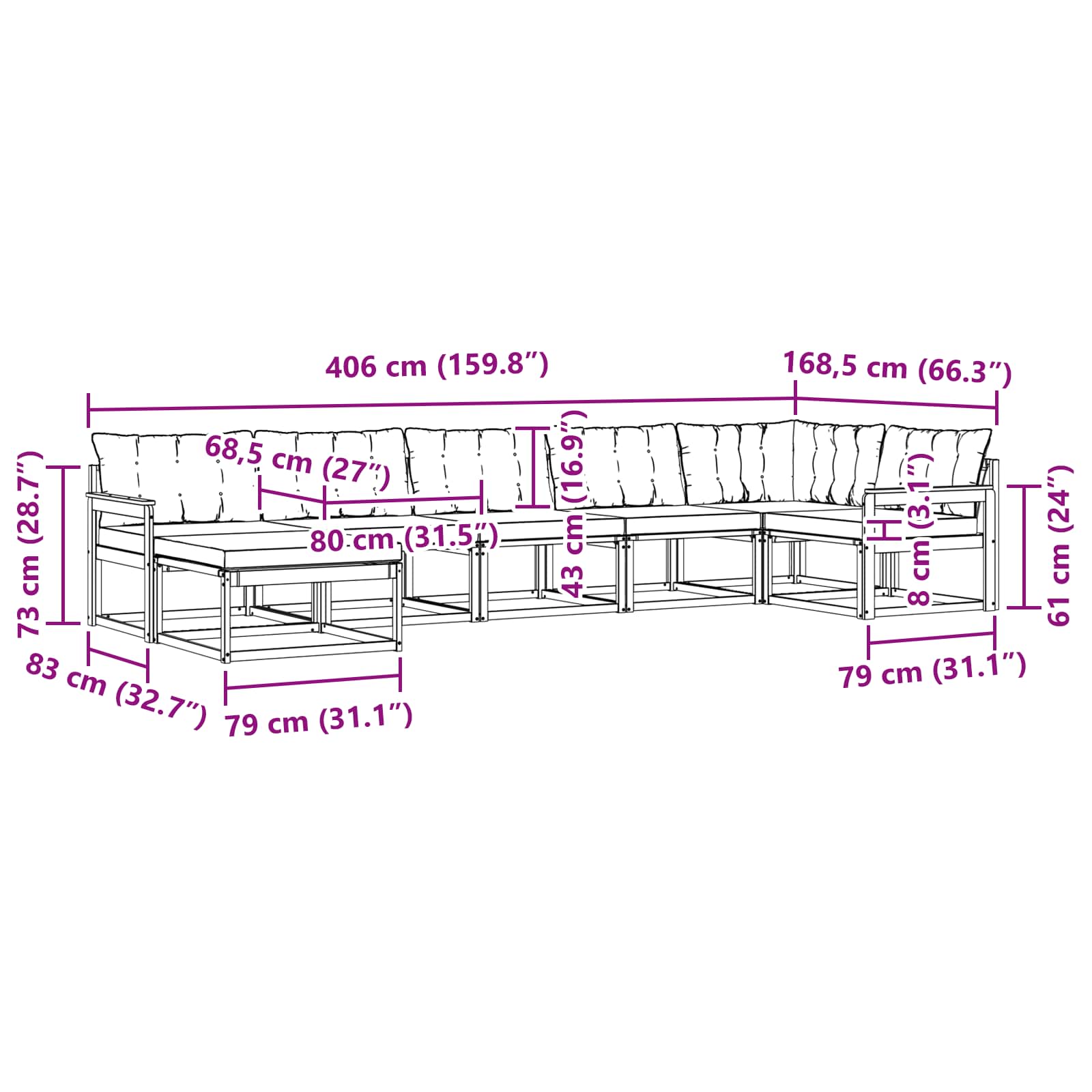 Tahle venkovní souprava pohovek je moderní skvost navržený k přetvoření tvojí zahrady nebo terasy na stylový úkryt. Nese eleganci a sofistikovanost, snadno se podřizuje současným venkovním stylům, láká k relaxaci a pohodě.