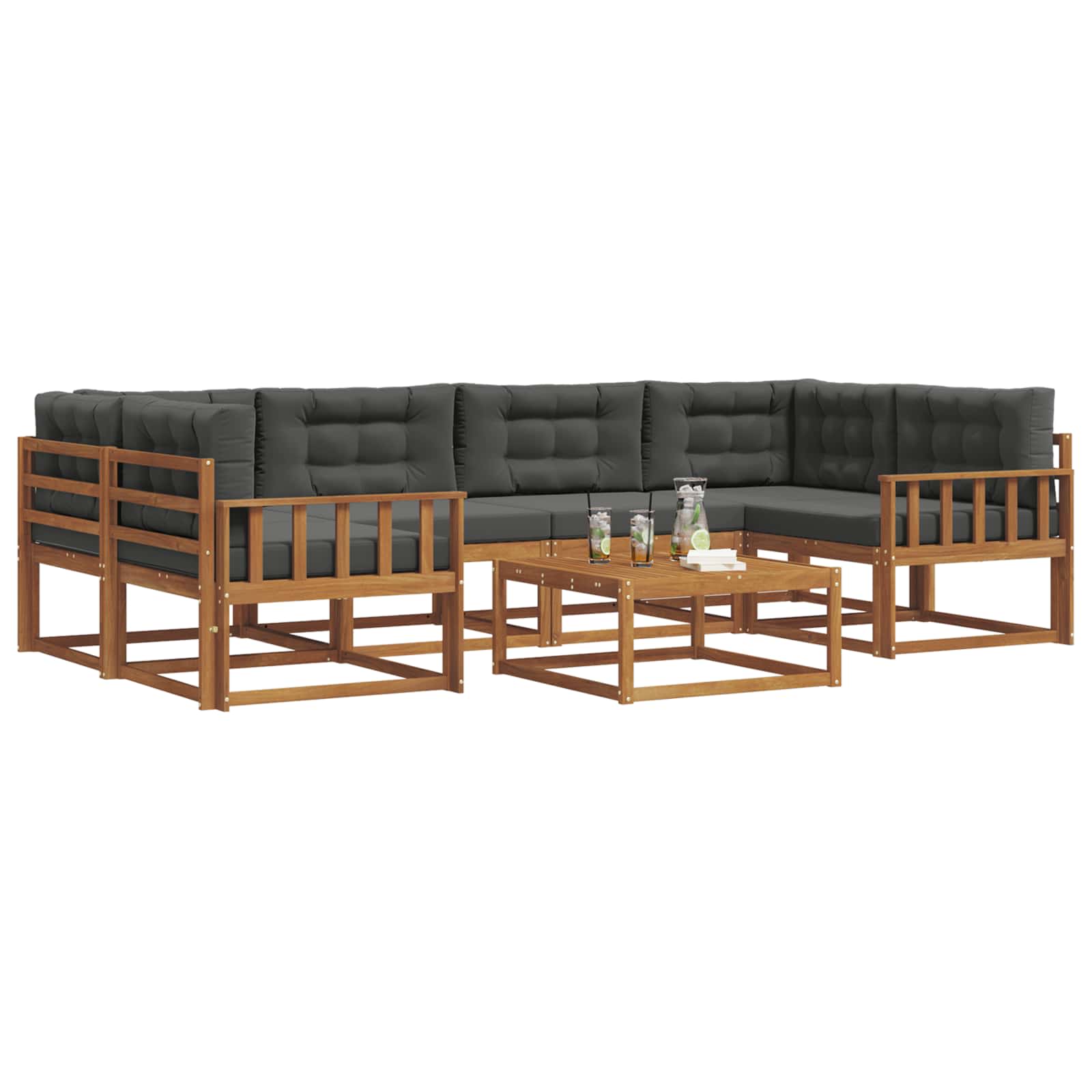 Tahle stylová rohová pohovka se parádně hodí do zahrady, na terasu nebo k bazénu. Nabízí spolehlivé sezení pro rodinné akce nebo lenošení. Moderní design s jednoduchými liniemi vypadá elegantně a dřevo akácie jí dodává i pevnost. Hnědý odstín pohovky vytváří příjemnou atmosféru a hezky zapadne do vašeho venkovního prostoru.