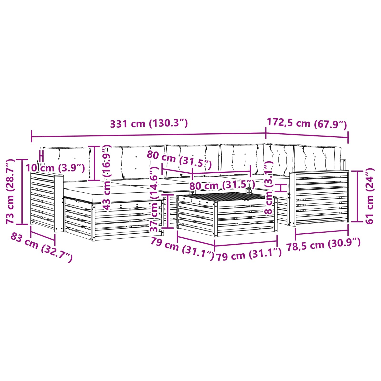 • 6 x sedací polštář: 80 x 80 x 8 cm (D x Š x V)