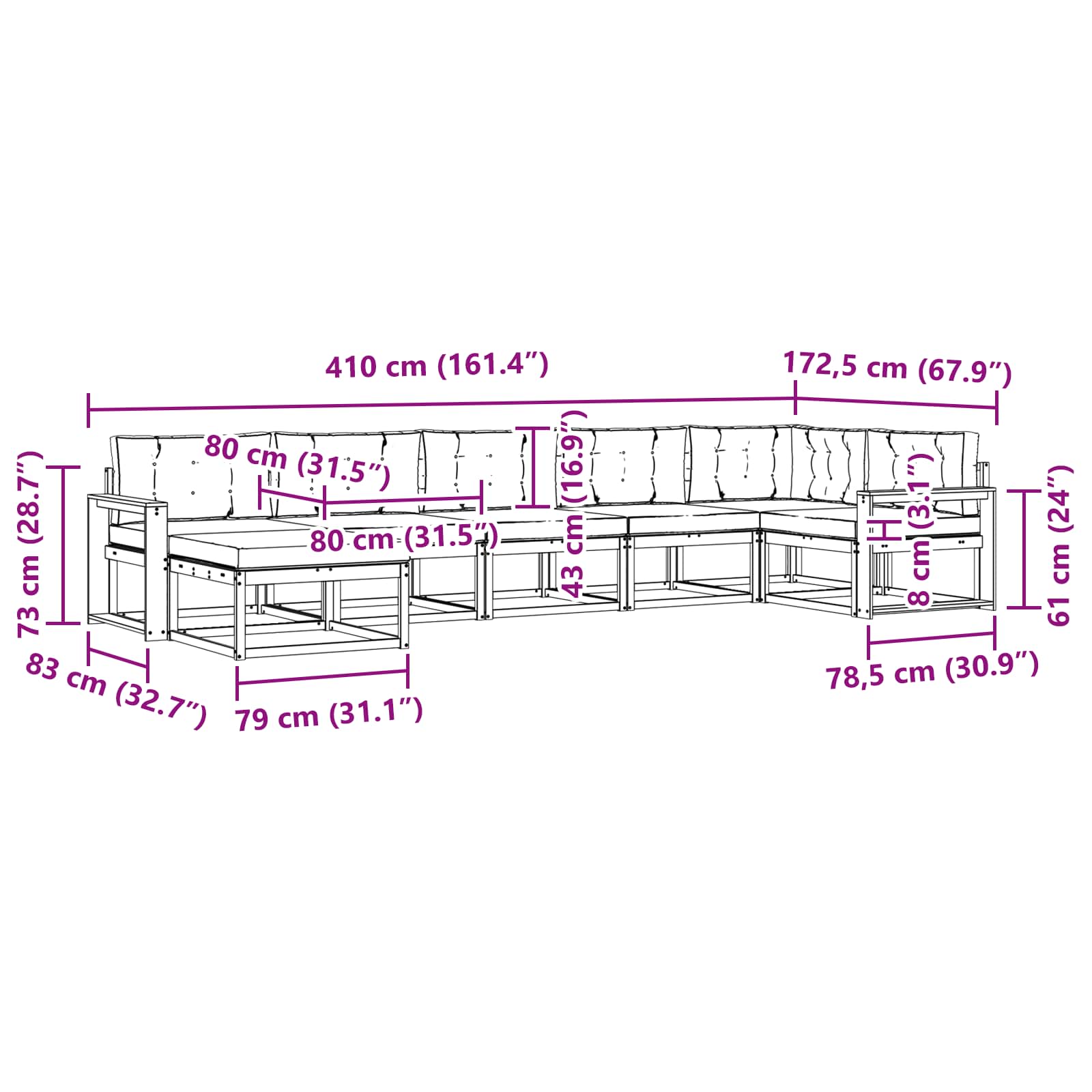 • Kvalitní materiály: Vyrobeno z masivního akáciového dřeva, což je odolné a vydrží špatné počasí, tenhle sofa set slibuje, že obstojí v každém počasí, aniž by ztratil na hezkém vzhledu. Jeho bohatá struktura dřeva dodává příjemný přírodní dotek každému venkovnímu prostoru a vytváří spojení elegance s odolností, což zajistí dlouhou životnost a atraktivní vzhled.