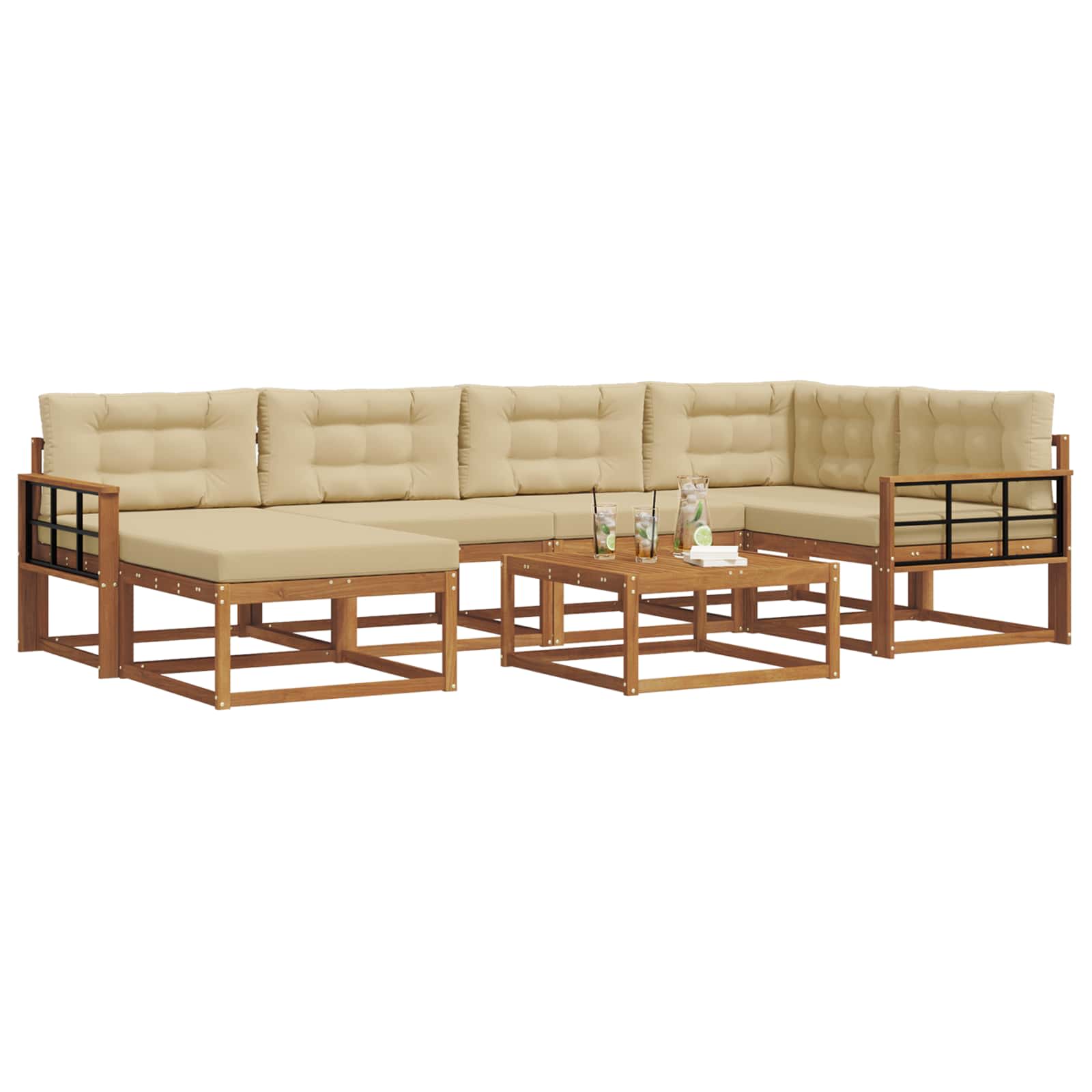 • Součásti: Sada obsahuje robustní rám, který poskytuje dobré sezení. Lamelový opěrák a područky z akáciového dřeva se skvěle hodí k celkovému designu a zvyšují pohodlí. Každý kousek je funkční podporou při dlouhém odpočinku na zahradě nebo u bazénu.