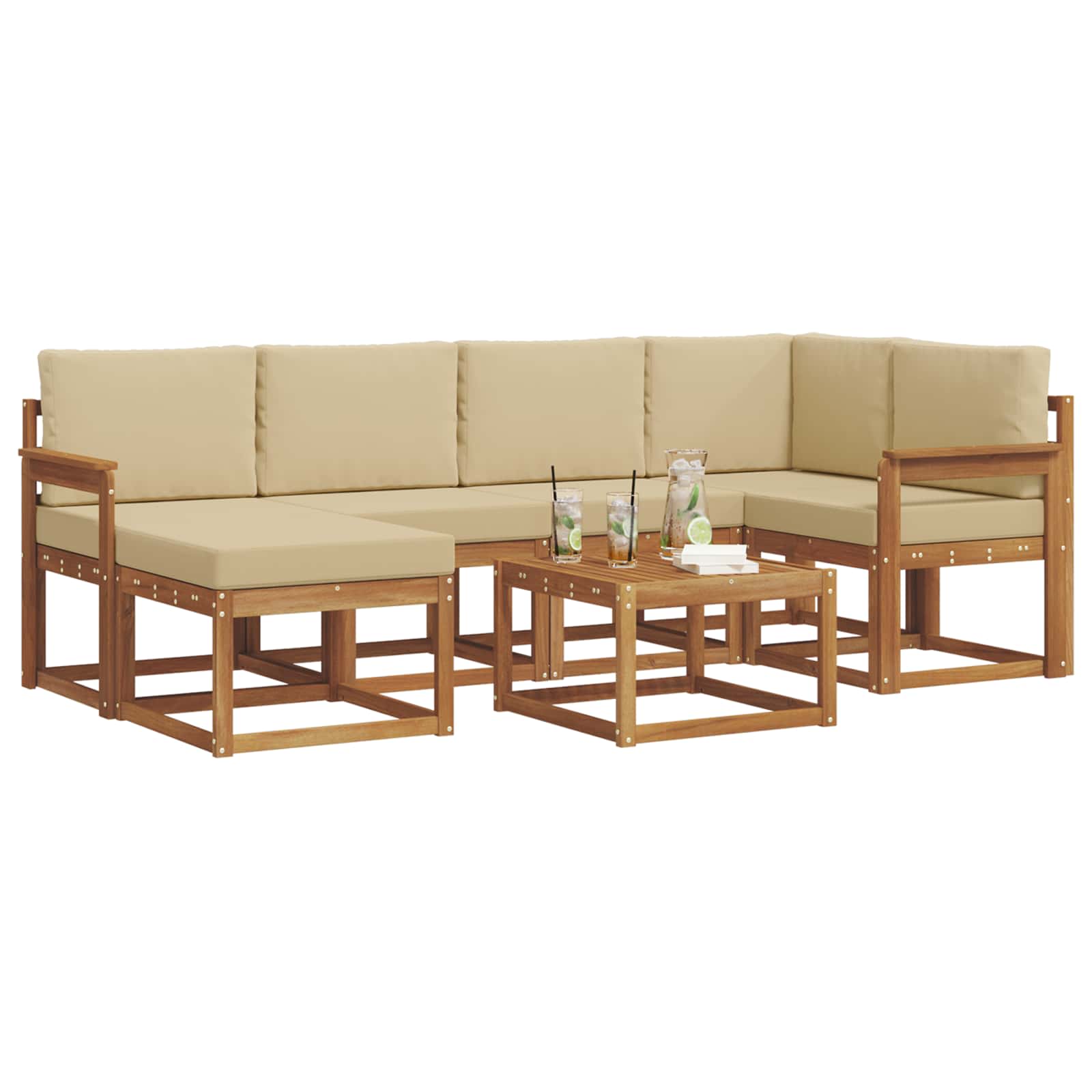 Venkovní pohovková souprava 7 pcs Přirozená a Béžová