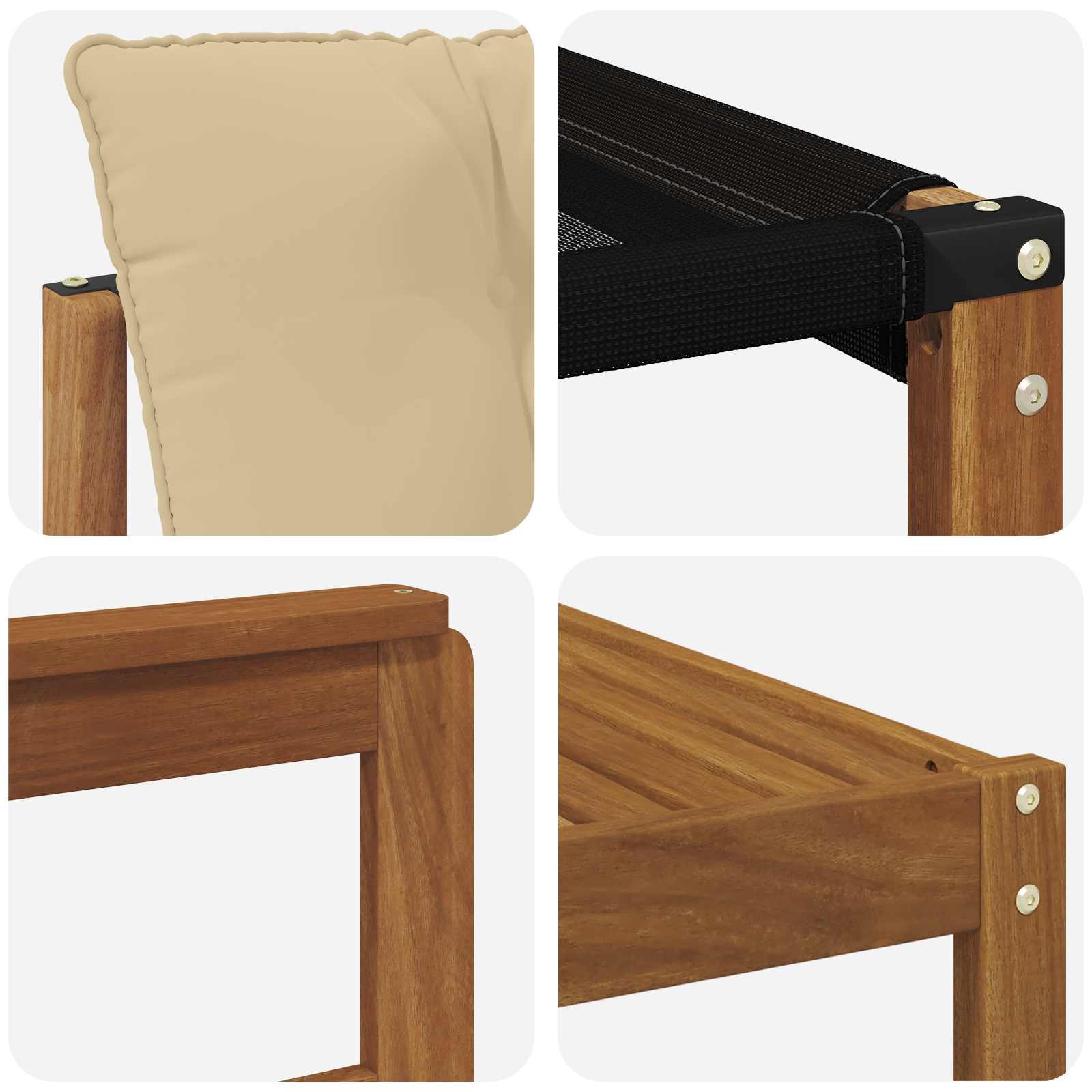 • Odolné masivní akáciové dřevo: Tato souprava zahradního nábytku je vyrobena z masivního akáciového dřeva. Je silná a odolná vůči venkovnímu prostředí, přičemž teplý přírodní tón dodává vaší zahradě příjemnou atmosféru.
