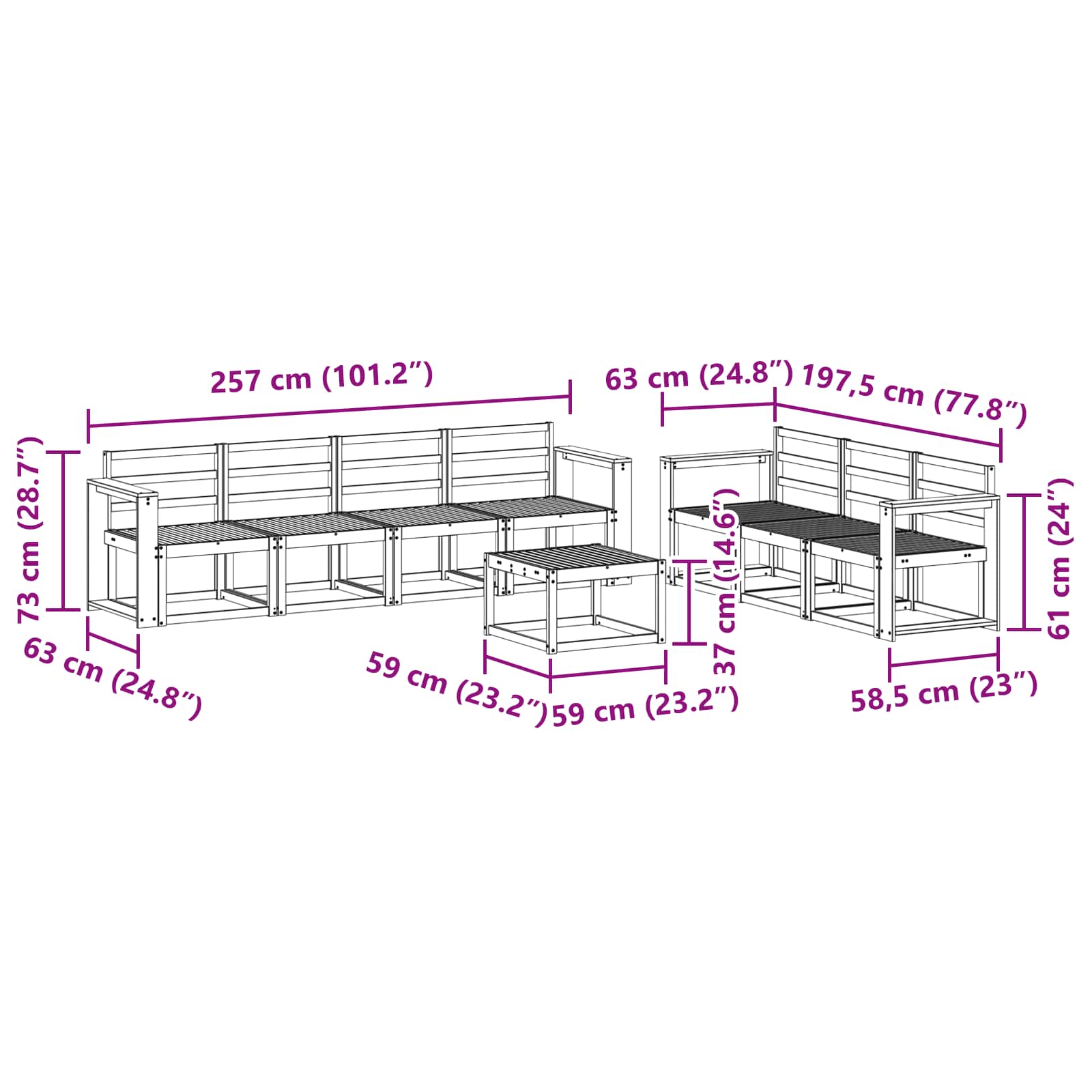Sada venkovního nábytku spojuje styl s praktičností, takže se stává skvělým centrem pro každou zahradu nebo terasu. Moderní design, s jasnými liniemi a minimalistickými detaily, přidává elegance a podporuje odpočinek venku i společenská setkání. Celá souprava je z kvalitního akáciového dřeva, což zaručuje její trvanlivost a vizuální přitažlivost. To ji dělá perfektní volbou pro ty, kdo chtějí jak funkčnost, tak rafinovaný design.