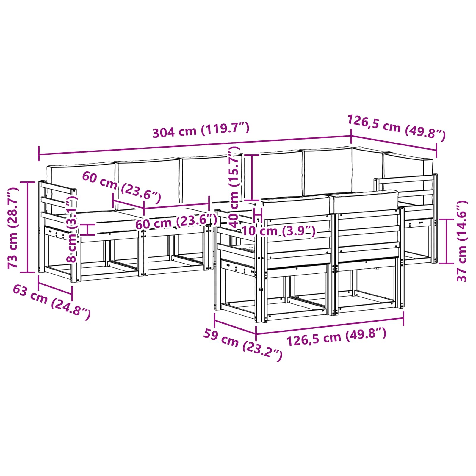 Tento venkovní nábytkový set spojuje styl a funkčnost a stává se skvělým bodem každé zahrady nebo terasy. Jeho moderní design s čistými liniemi a minimalistickými detaily dodává eleganci a podporuje pohodlné venkovní sezení a setkání s přáteli. Bylo vyrobeno z masivního akáciového dřeva, což zajišťuje, že vydrží dlouho a vypadá skvěle, ideální pro ty, kteří hledají praktický a stylový venkovní nábytek.