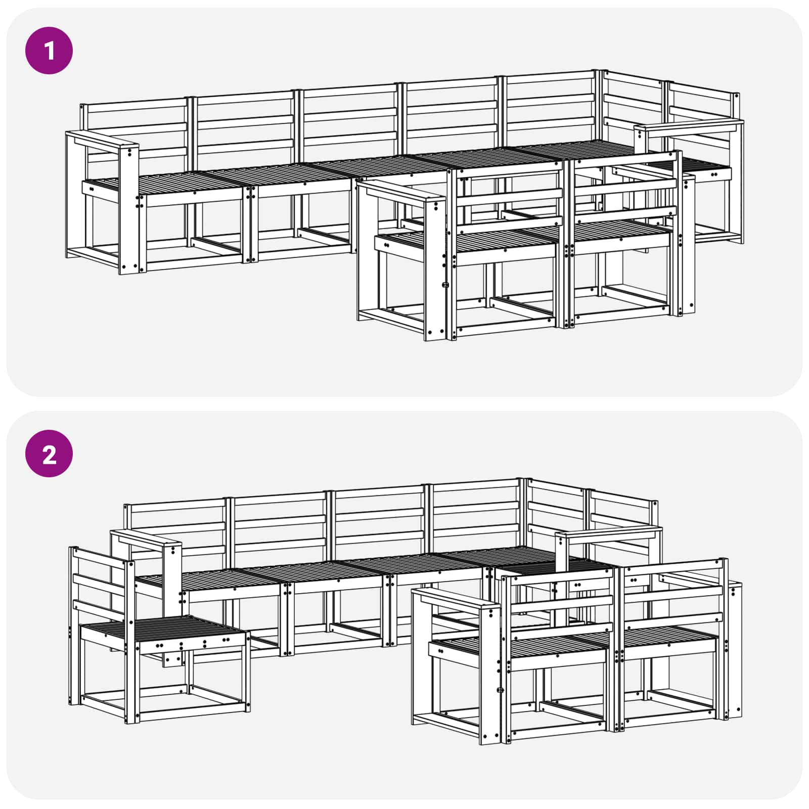 • Pohodlí a všestrannost: Modulární design umožňuje flexibilní úpravy pro rozmanité prostory. Ideální pro odpočinek, společenská setkání nebo chvíle s knihou, tento set se snadno přizpůsobí venkovnímu prostředí a maximálně zajišťuje komfort.
