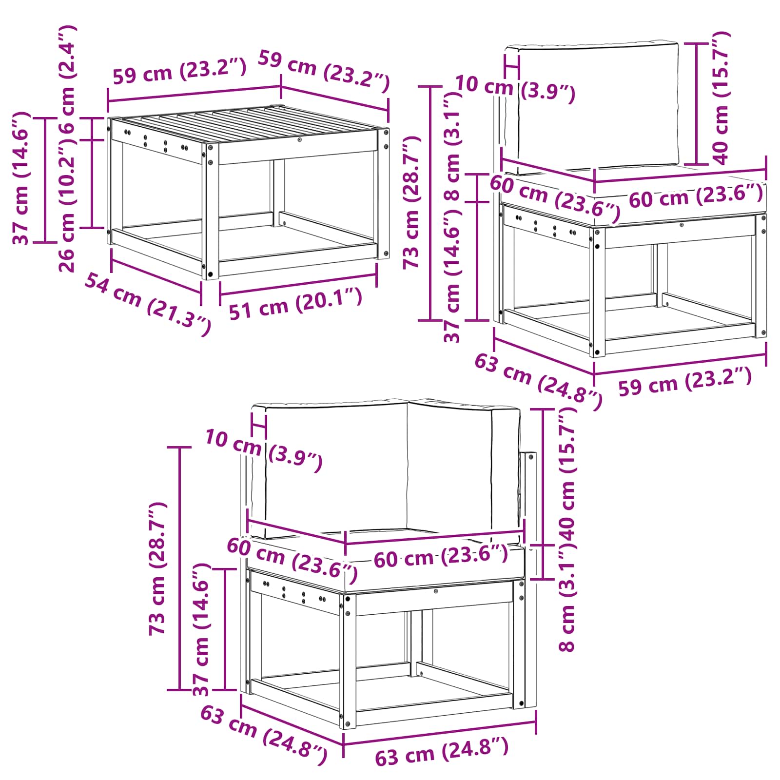 • 5 x Střední pohovka: 59 x 63 x 73 cm (D x Š x V)