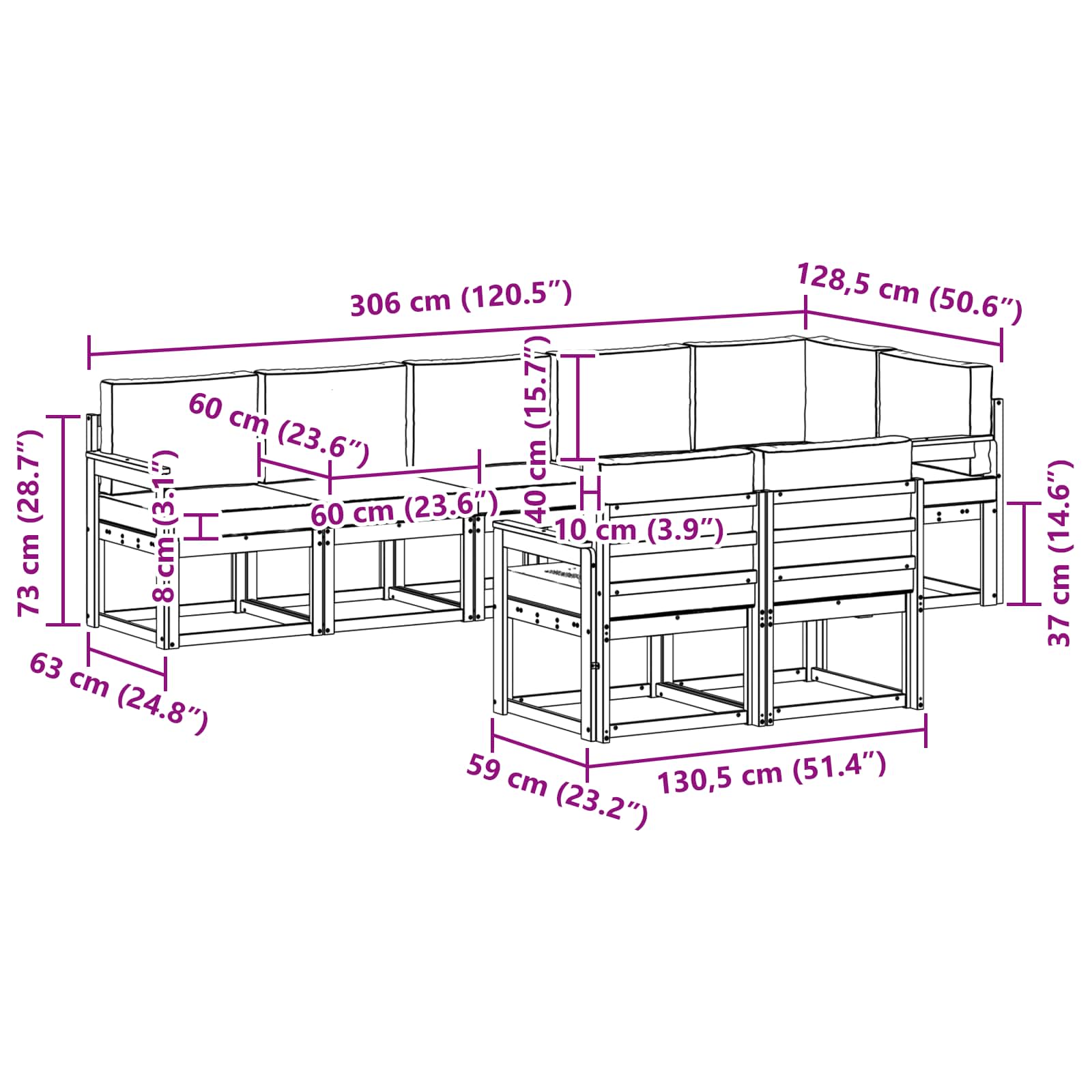 Tento venkovní nábytkový set spojuje styl a funkčnost a stává se skvělým bodem každé zahrady nebo terasy. Jeho moderní design s čistými liniemi a minimalistickými detaily dodává eleganci a podporuje pohodlné venkovní sezení a setkání s přáteli. Bylo vyrobeno z masivního akáciového dřeva, což zajišťuje, že vydrží dlouho a vypadá skvěle, ideální pro ty, kteří hledají praktický a stylový venkovní nábytek.