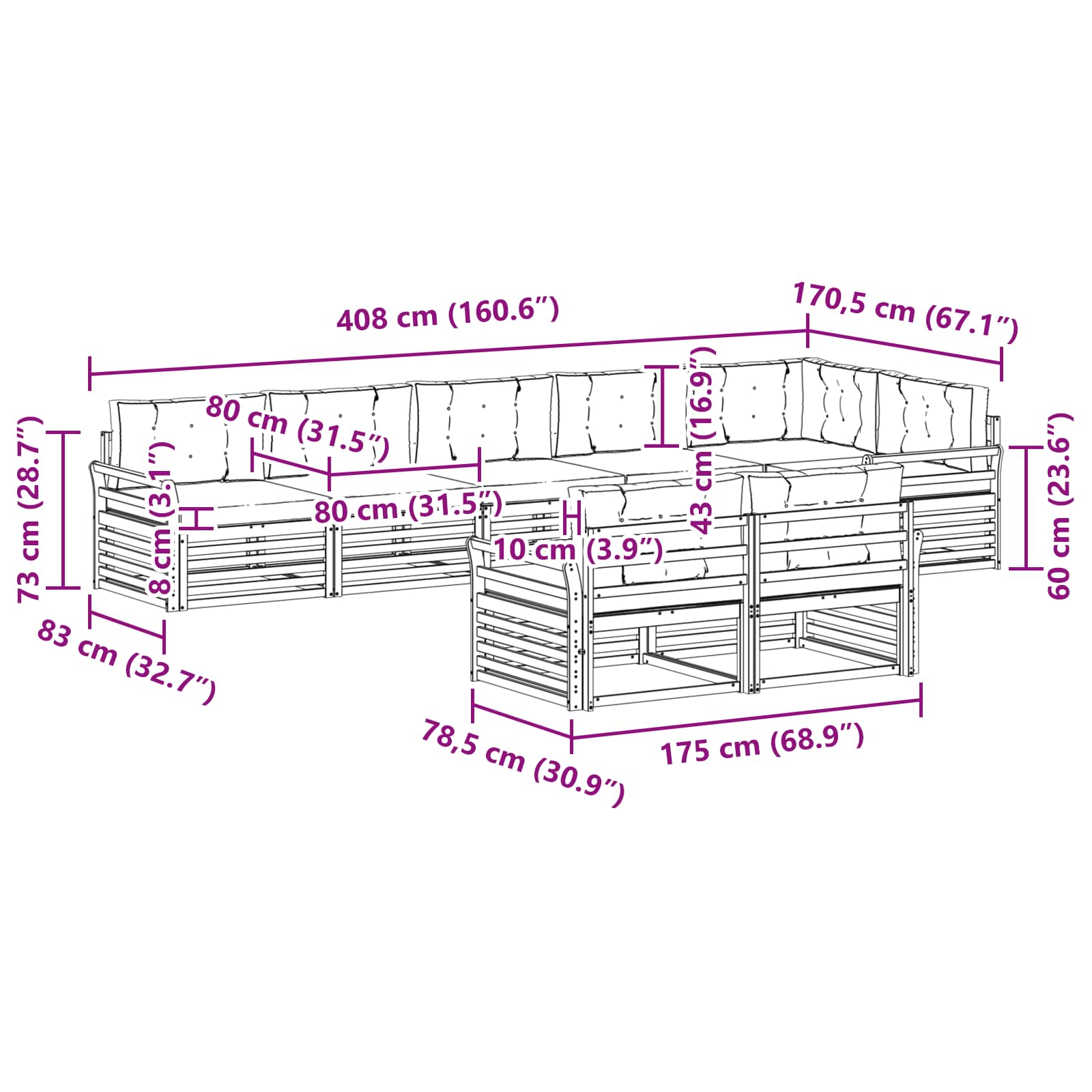 Tato venkovní pohovková sada spojuje moderní eleganci a funkčnost, takže se hodí do každé zahrady nebo na terasu. Její design je minimalistický, přičemž masivní akáciové dřevo dává krásnou barvu. Skvělá na venkovní odpočinek, udržuje trvanlivost a flexibilitu, což znamená, že si ji můžete uspořádat podle našich potřeb – relaxovat, bavit se nebo si popovídat. Každý kus zlepší atmosféru vaší zahrady a vytvoří příjemné prostředí pro setkání nebo klidné chvíle o samotě.