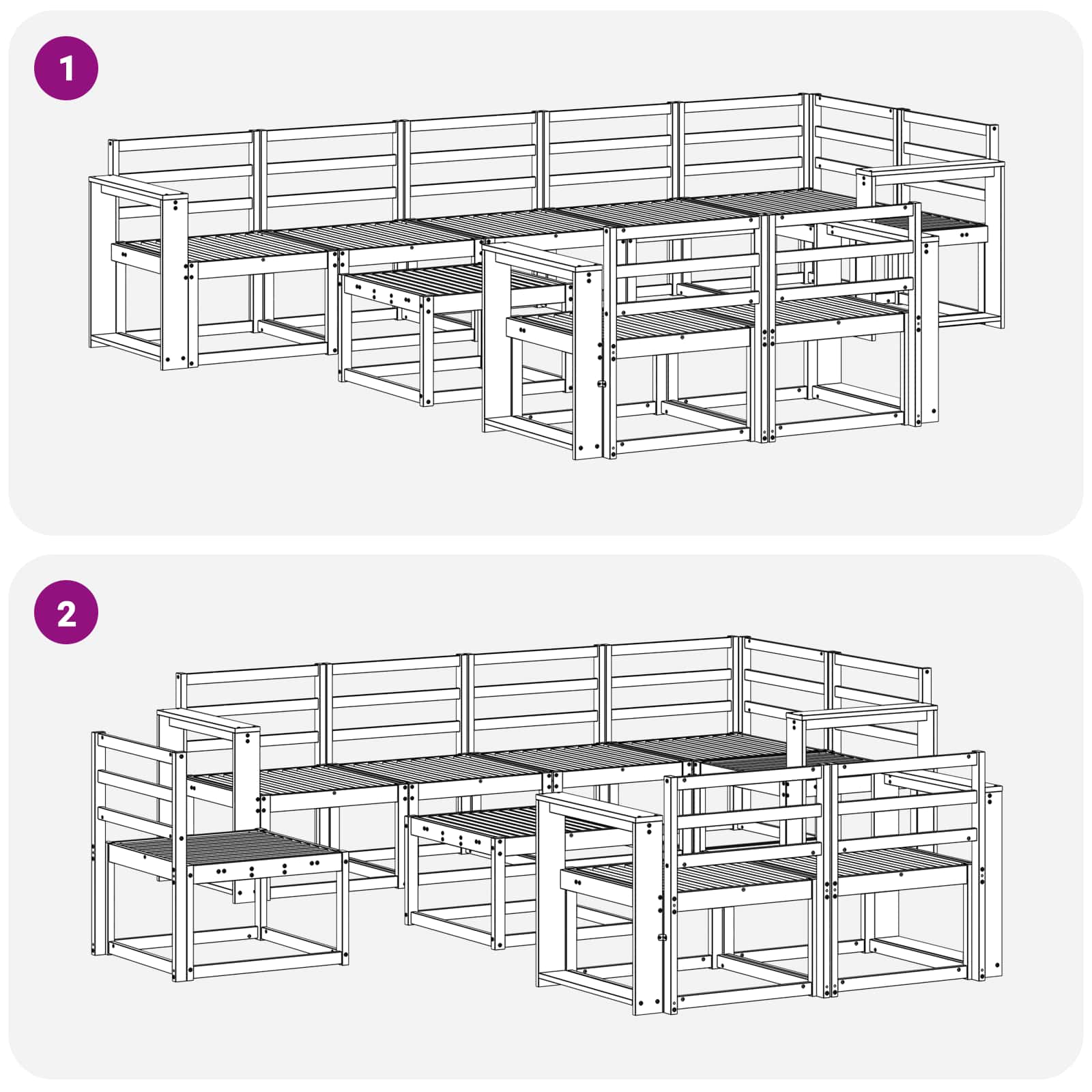• Pohodlné opěradlo: Opěradla jsou navržena tak, aby nabídla ergonomickou oporu. Poskytují skvělé pohodlí, takže můžete relaxovat, ať už máte volný den na sluníčku, nebo pořádáte venkovní dýchánek.