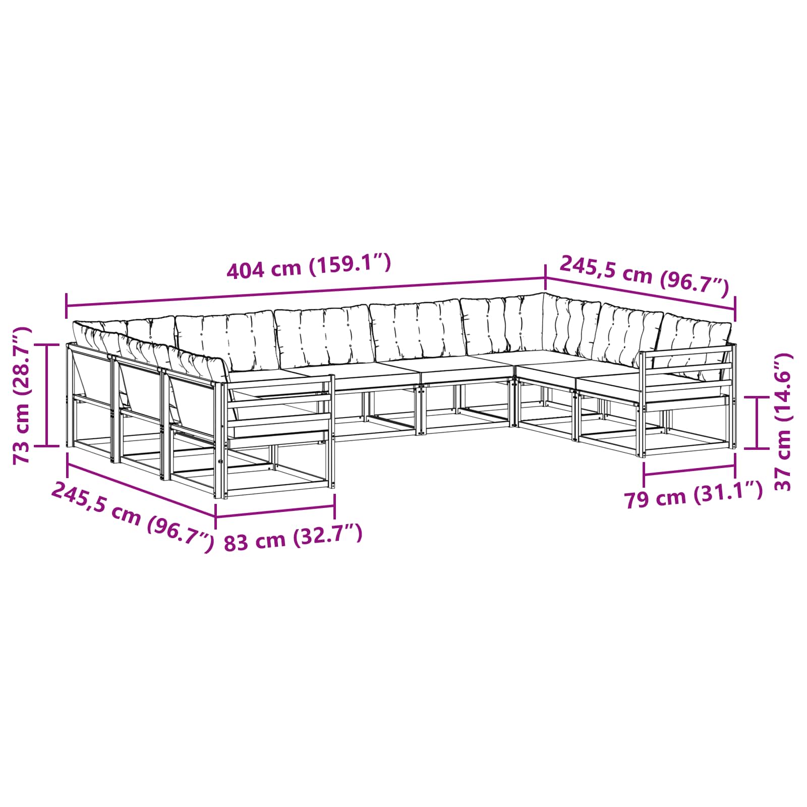 • 7 x Středová pohovka: 79 x 83 x 73 cm (D x Š x V)