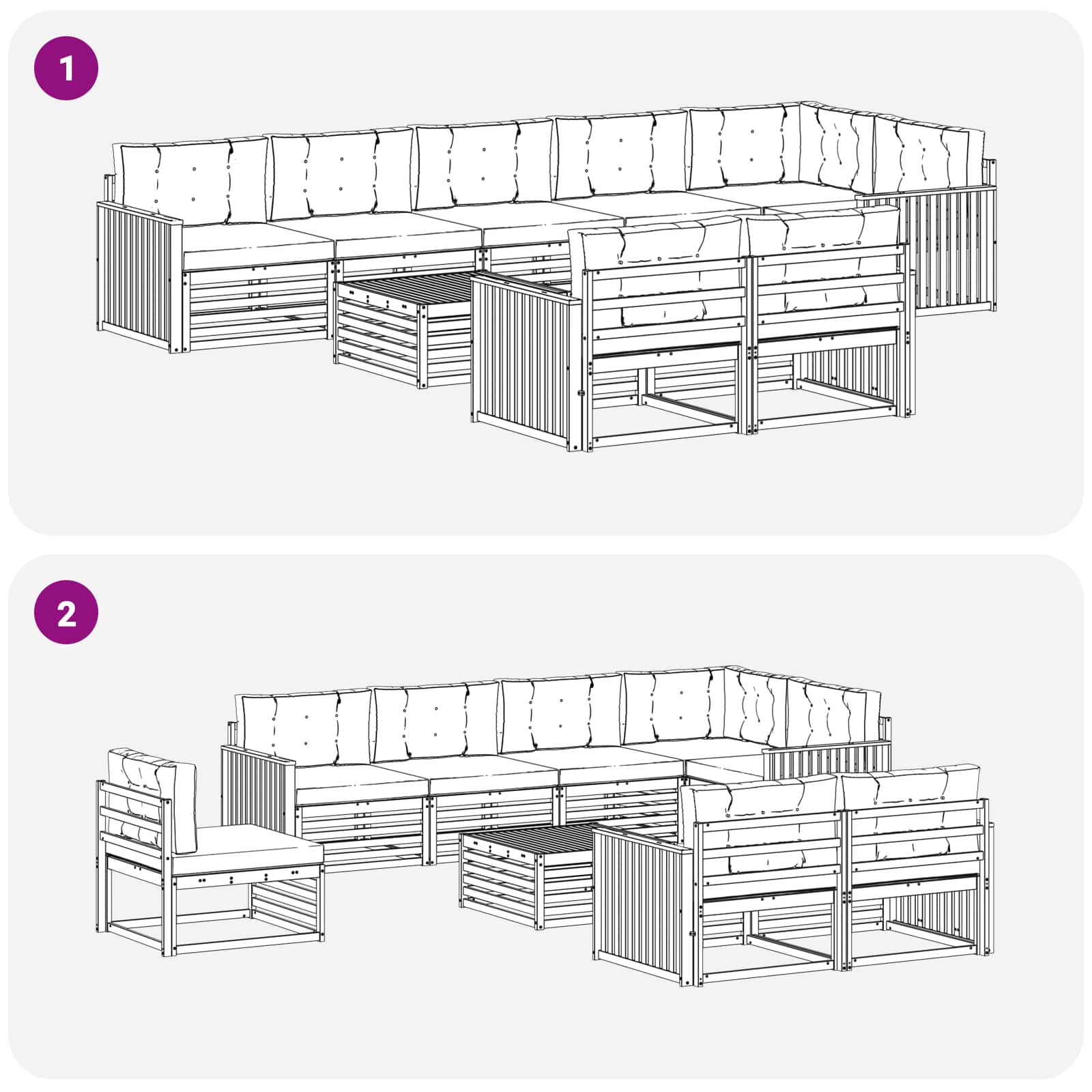 • Komfort a variabilita: Modulární design umožňuje snadné uspořádání, které se přizpůsobí různým prostorům a potřebám. Skvělé pro odpočinek, společenské akce nebo klidné chvíle s knížkou, tahle souprava se snadno přizpůsobí a zajistí maximální pohodlí.