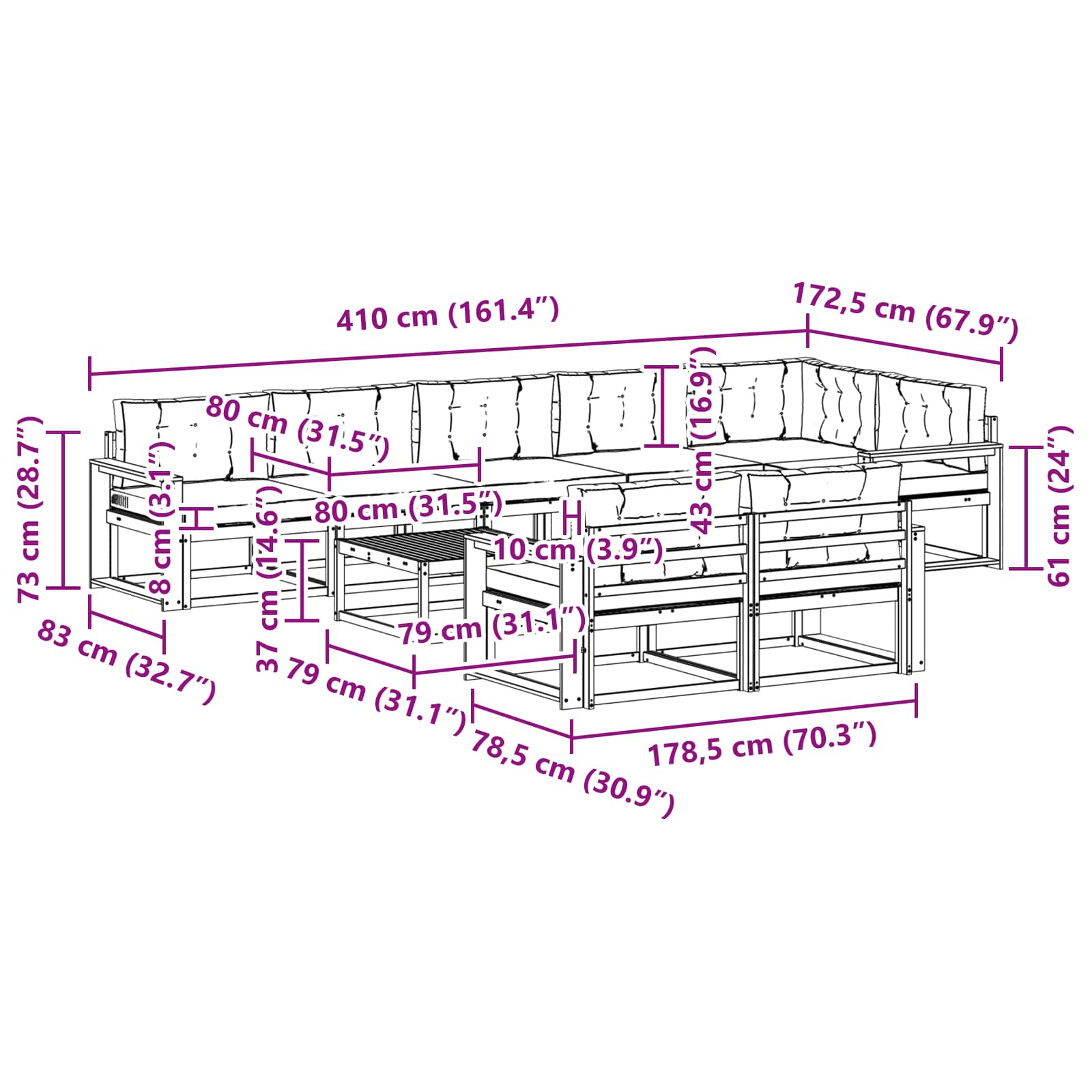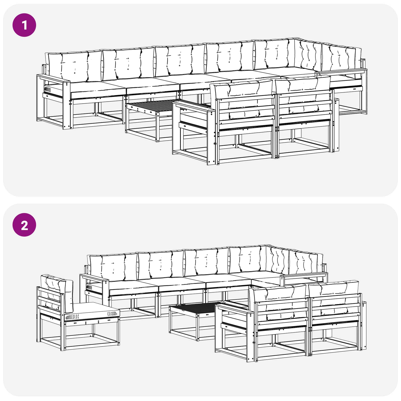 Tato sada venkovního nábytku je super stylovým doplňkem pro každou zahradu nebo terasu. Má čisté linie a moderní vzhled, navržená pro pohodlí a společenské interakce v každém venkovním prostoru. Vyrobená z masivního akáciového dřeva, spojuje atraktivní vzhled s funkčností díky modulárnímu uspořádání, které si můžete snadno přizpůsobit různým prostorům a příležitostem.