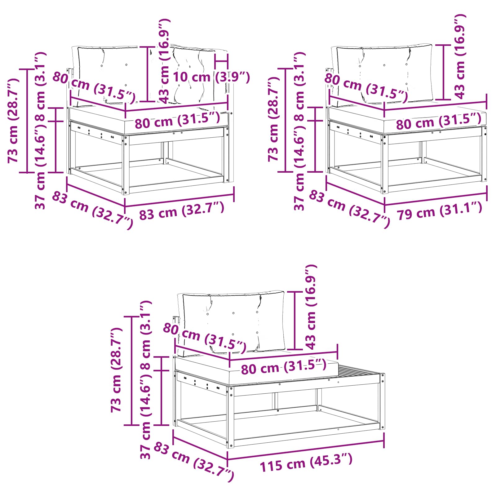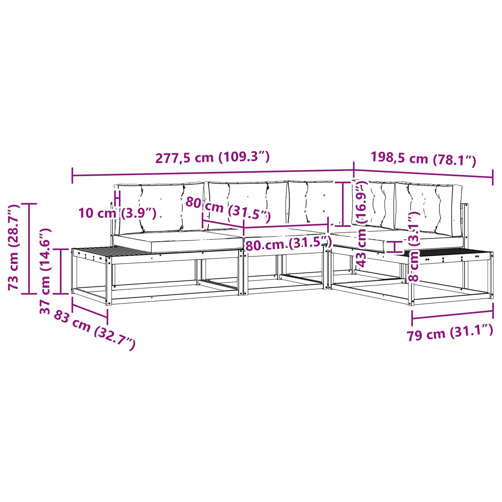 Tato venkovní sedací souprava přetváří relaxaci venku díky svému trendy designu a robustní konstrukci. Skvělá do teras, zahrad nebo balkonů, tahle pohovka vytváří elegantní a pohodlné místo pro odpočinek nebo zábavu. Moderní design s jednoduchými a čistými liniemi dodává funkčnost i eleganci do každého venkovního prostoru. Použití masivního akáciového dřeva zvyšuje vizuální přitažlivost a zároveň zajišťuje pevnost a odolnost pro všechny vaše potřeby sezení. Díky této univerzální soupravě pohovek proměníte svou venkovní plochu na vítanou oázu, ideální pro teplé letní večery s přáteli nebo tiché odpoledne o samotě.