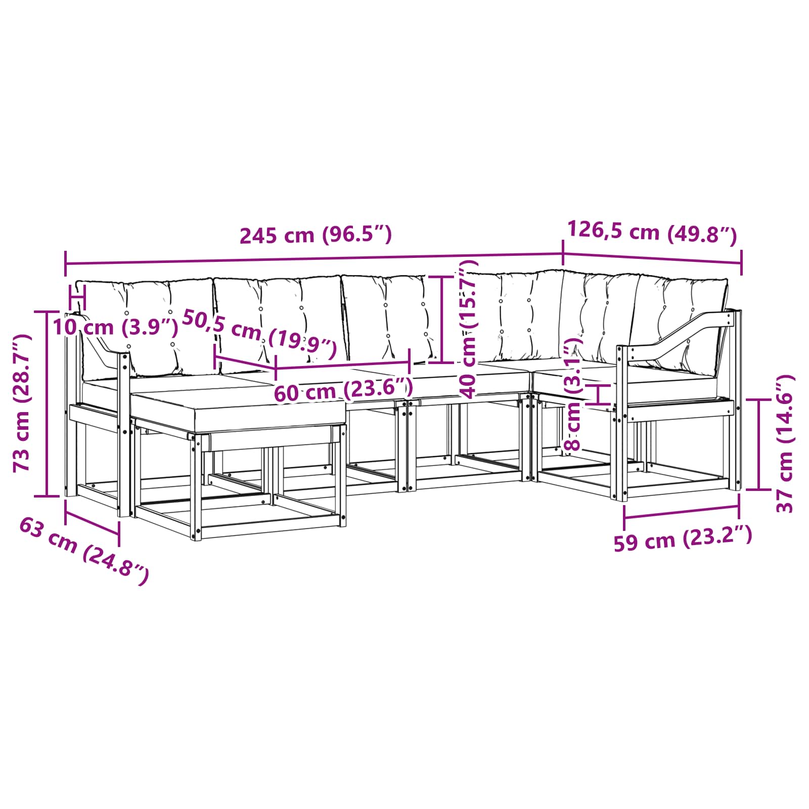 • 6 x Zádový polštář: 60 x 40 x 10 cm (D x Š x V)