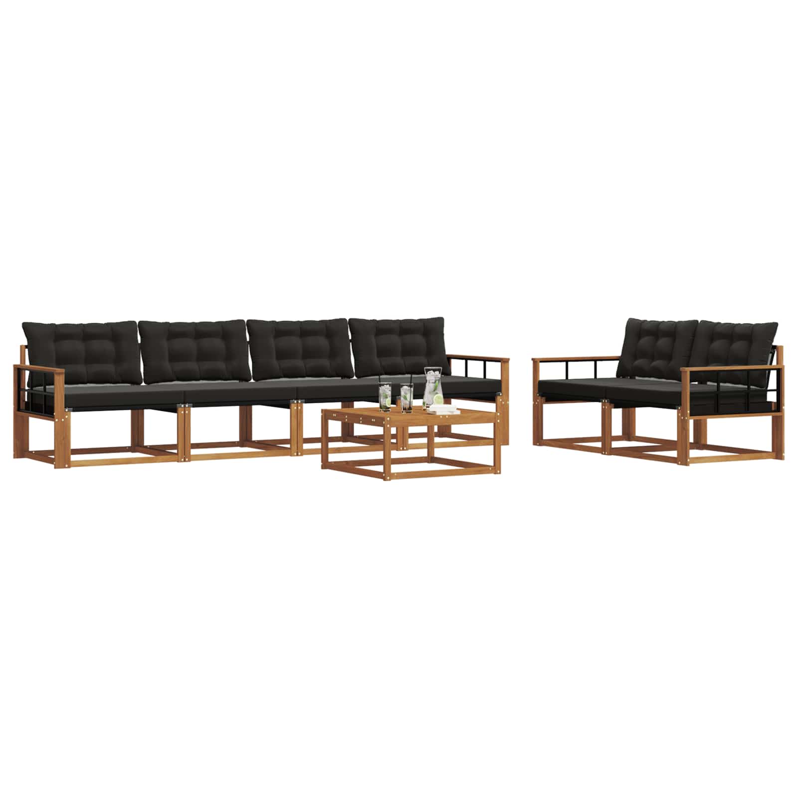 Tato venkovní souprava nábytku spojuje styl s praktičností, což z ní dělá skvělý středobod pro každou zahradu nebo terasu. Moderní design s čistými liniemi a minimálními detaily přináší eleganci a podporuje venkovní odpočinek a sešlosti s přáteli. Vyrobena z masivního akáciového dřeva, je to volba, která zaručuje dlouhou životnost a pěkný vzhled pro ty, kteří hledají něco pružného a zajímavého.