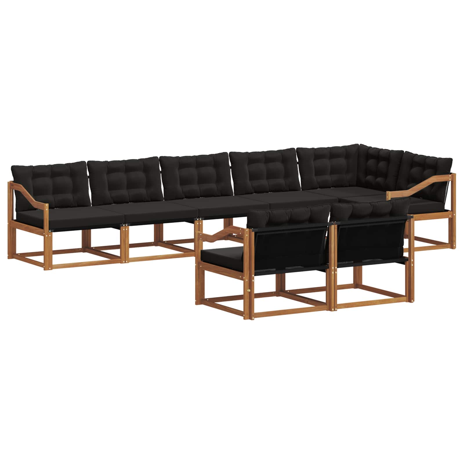 Souprava venkovního nábytku kombinuje styl i funkčnost a je úžasným středobodem v každé zahradě nebo na terase. S moderním designem a čistými liniemi dodává eleganci a podporuje venkovní relaxaci a společenské akce. Celá je vyrobena z kvalitního akáciového dřeva, což ji činí trvanlivou a vizuálně přitažlivou, ideální pro ty, co hledají praktický a zároveň stylový zahradní nábytek.