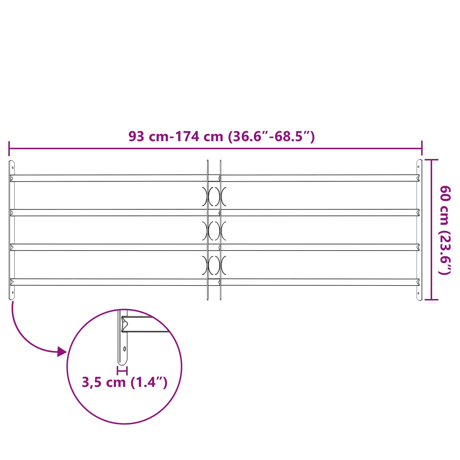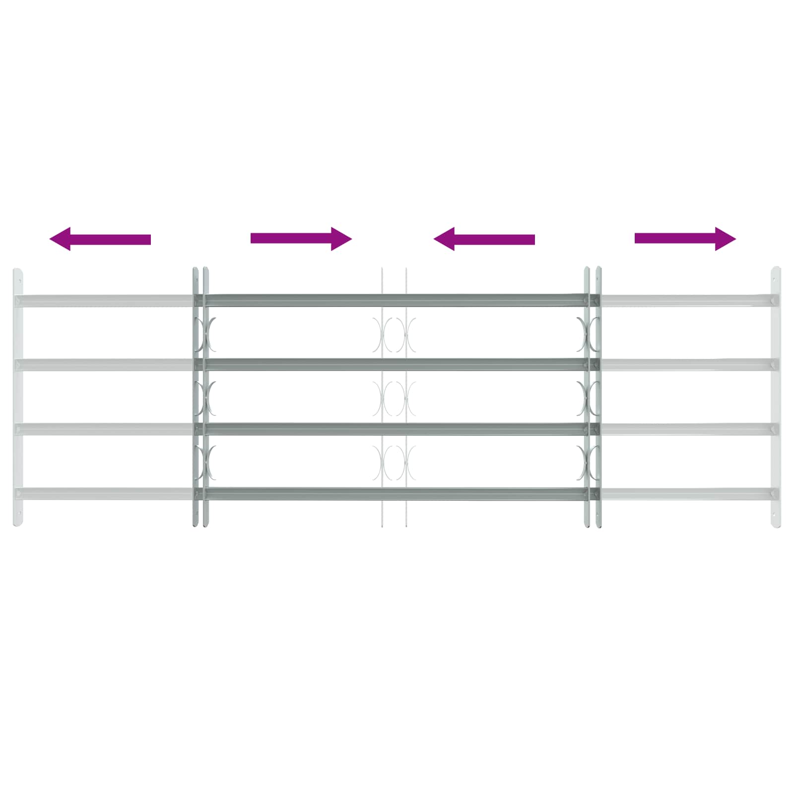 Toto bezpečnostní mřížko na okna je vyrobené z pozinkované oceli a je navržené, aby poskytlo extra ochranu oknům. Mřížko má nastavitelnou délku, což mu dovoluje přizpůsobit se různým šířkám oken, a horizontální příčky posilují jeho konstrukci a zvyšují zabezpečení oken ve vašich prostorách.