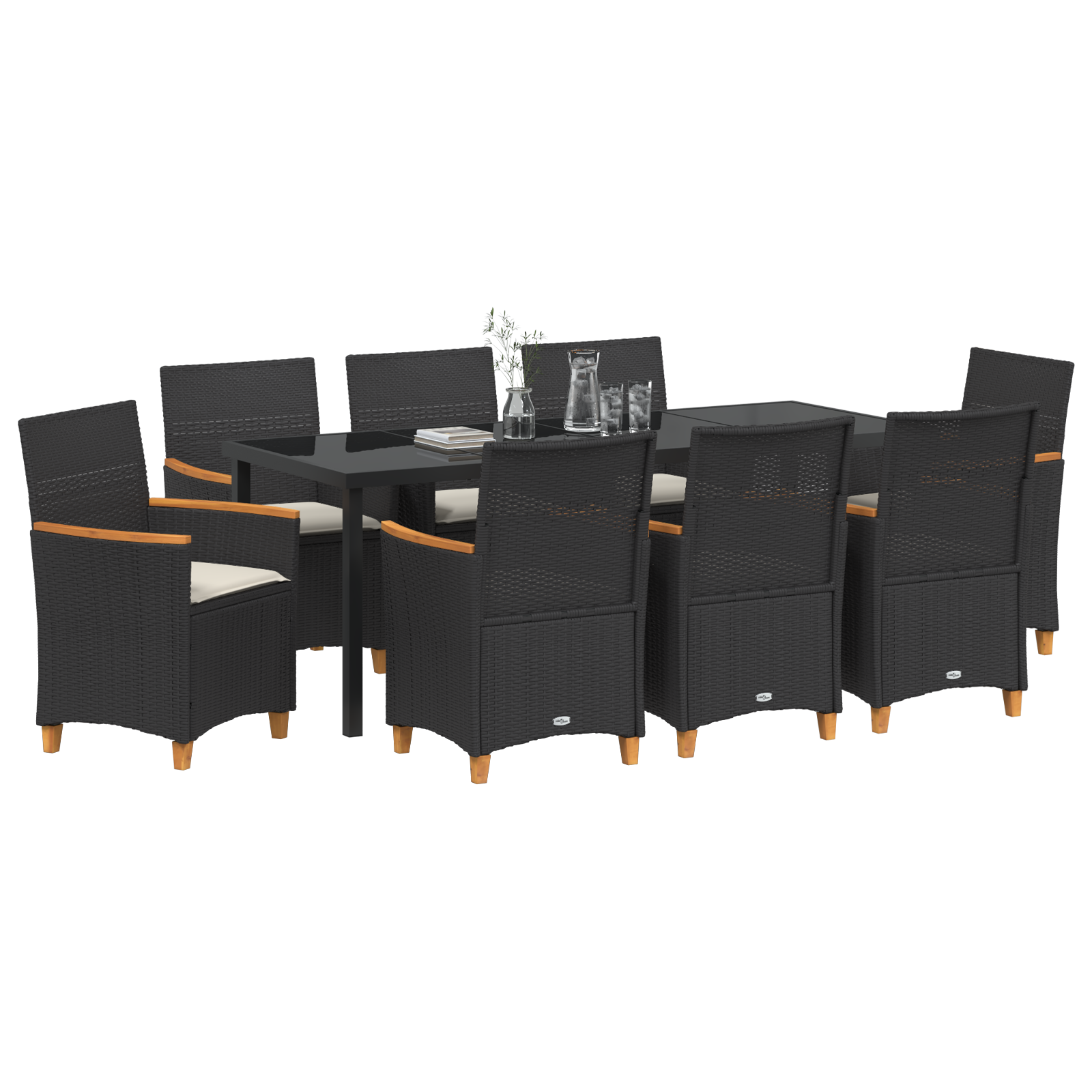 Tento zahradní jídelní set přetvoří jakýkoli venkovní prostor na moderní a funkční jídelnu. Elegantní přímé linie a minimalistický styl nabízejí ideální kombinaci estetiky a užitnosti, takže je to skvělé místo pro jídlo s rodinou nebo pořádání zahradních večírků. Kombinace poly ratanu a oceli vytváří stylový a spolehlivý set pro různá venkovní prostředí. Okouzlující hnědé odstíny a skleněná deska mu dodávají současný nádech a zvyšují přitažlivost zahrad a teras.