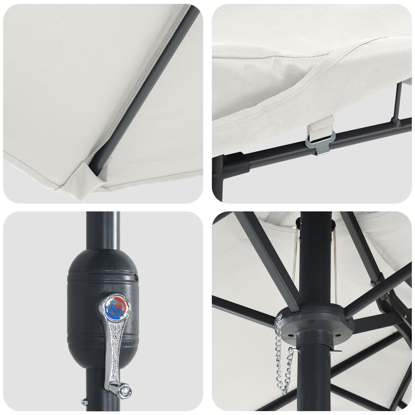 • Součásti: Slunečník má snadno nastavitelný mechanismus pro pohodlné skládání a uskladnění. Manuální klika vám umožní bez námahy otevírat a zavírat deštník. Tato promyšlená konstrukce dělá užívání jednoduchým a bez komplikací.