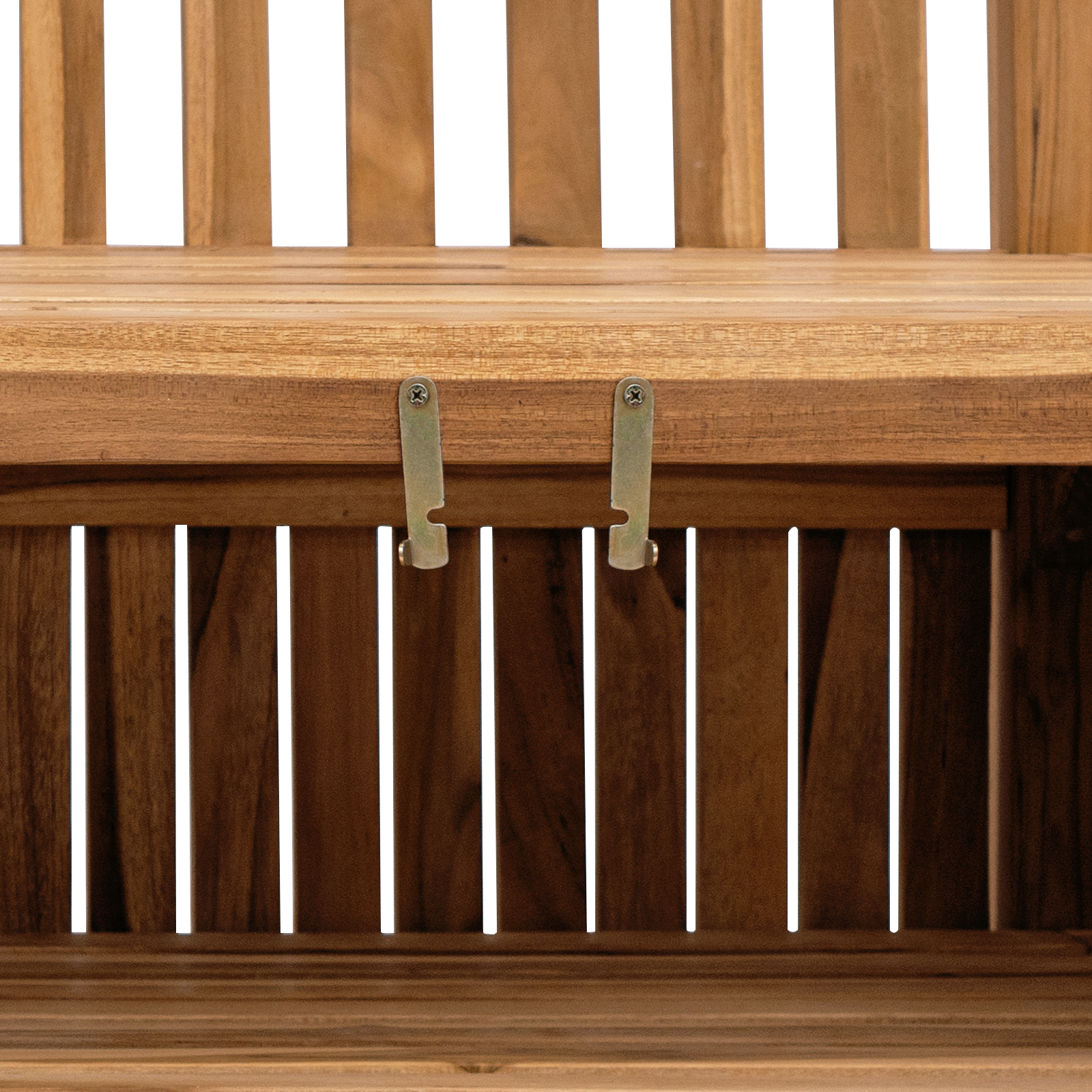 Tato nádherná zahradní lavice spojuje rustikální kouzlo a praktickou funkčnost. Obdélníkový tvar s bohatým hnědým odstínem perfektně doplní jakýkoli zahradní styl. Díky své robustnosti je ideální pro odpočinek po práci na zahradě nebo příjemné večery pod hvězdami. Z masivního teakového dřeva se zaručeně nestane jen další kus nábytku, ale elegantní součást vašeho venkovního obývacího koutku.