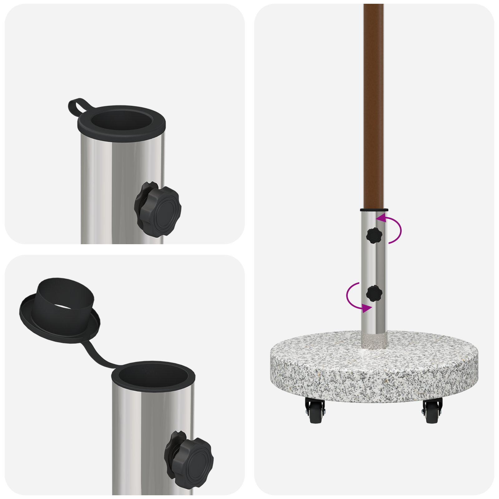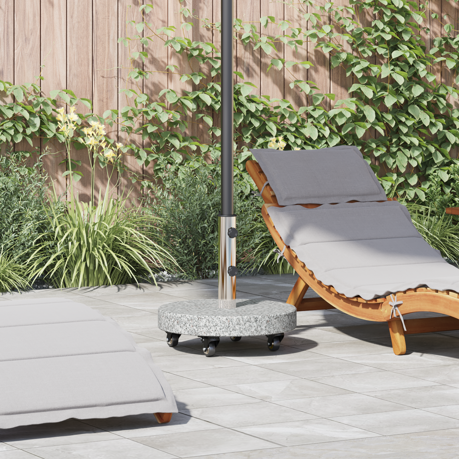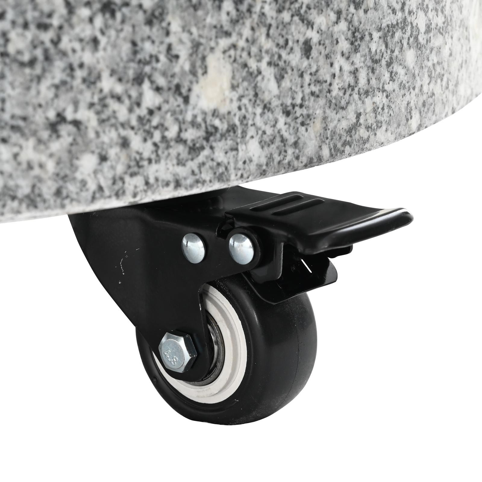 Tento kulatý podstavec pro slunečník vypadá skvěle a je praktický, takže je ideální do zahrad a na terasy. Je navržen tak, aby byl moderní, jednoduchý a funkční, což z něj dělá ideální volbu pro letní uspořádání. Žulový základ zajišťuje stabilitu a nerezová ocel zvyšuje jeho odolnost, takže se nemusíte bát, že by se slunečník při špatném počasí převrátil. A díky rolovacímu mechanismu ho lehce přemístíte, takže si můžete užít sluníčko kdykoli chcete.